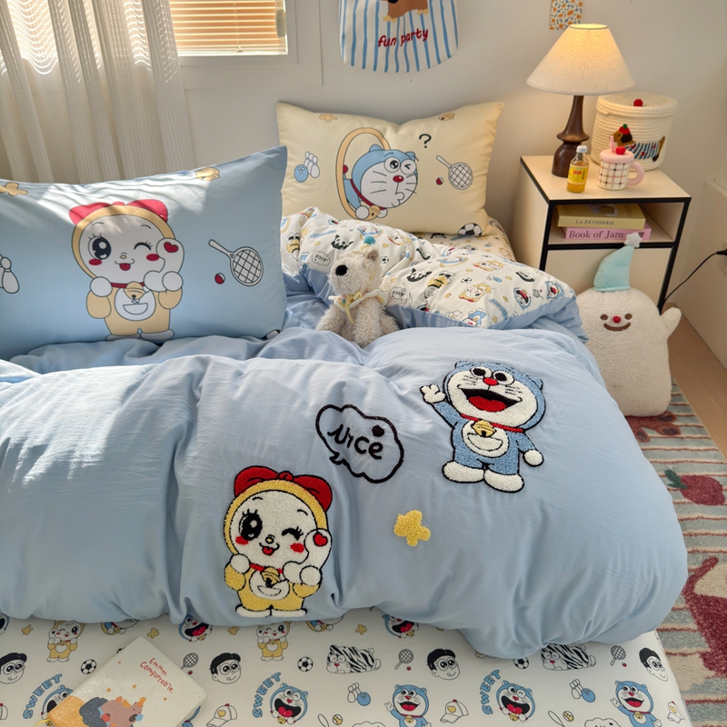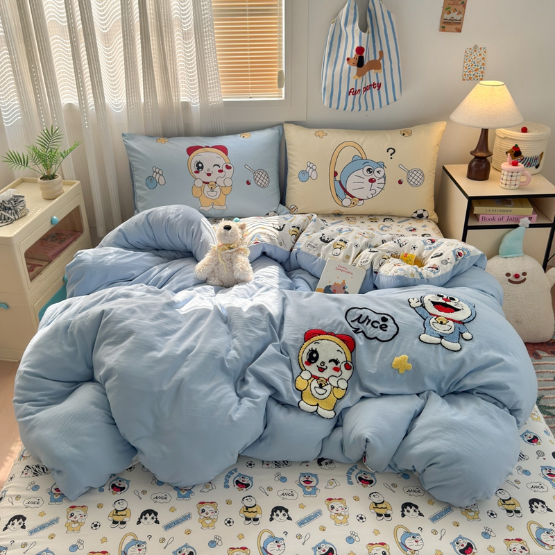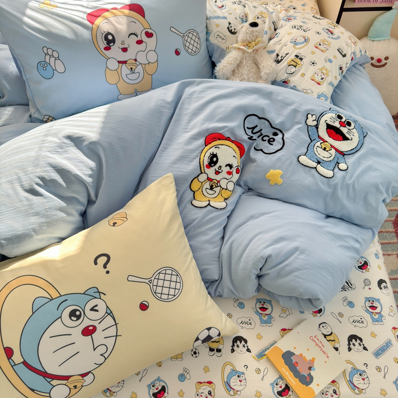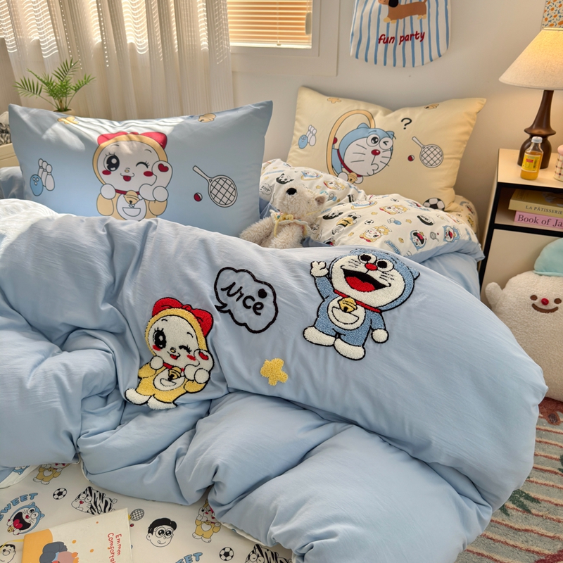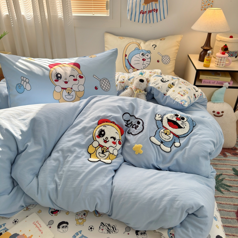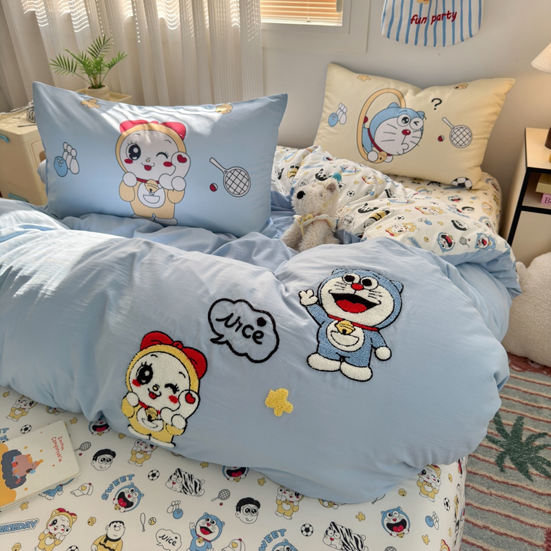 一霖家纺 2025新款高克重云朵棉数码印花+毛巾绣四件套萌萌小叮当