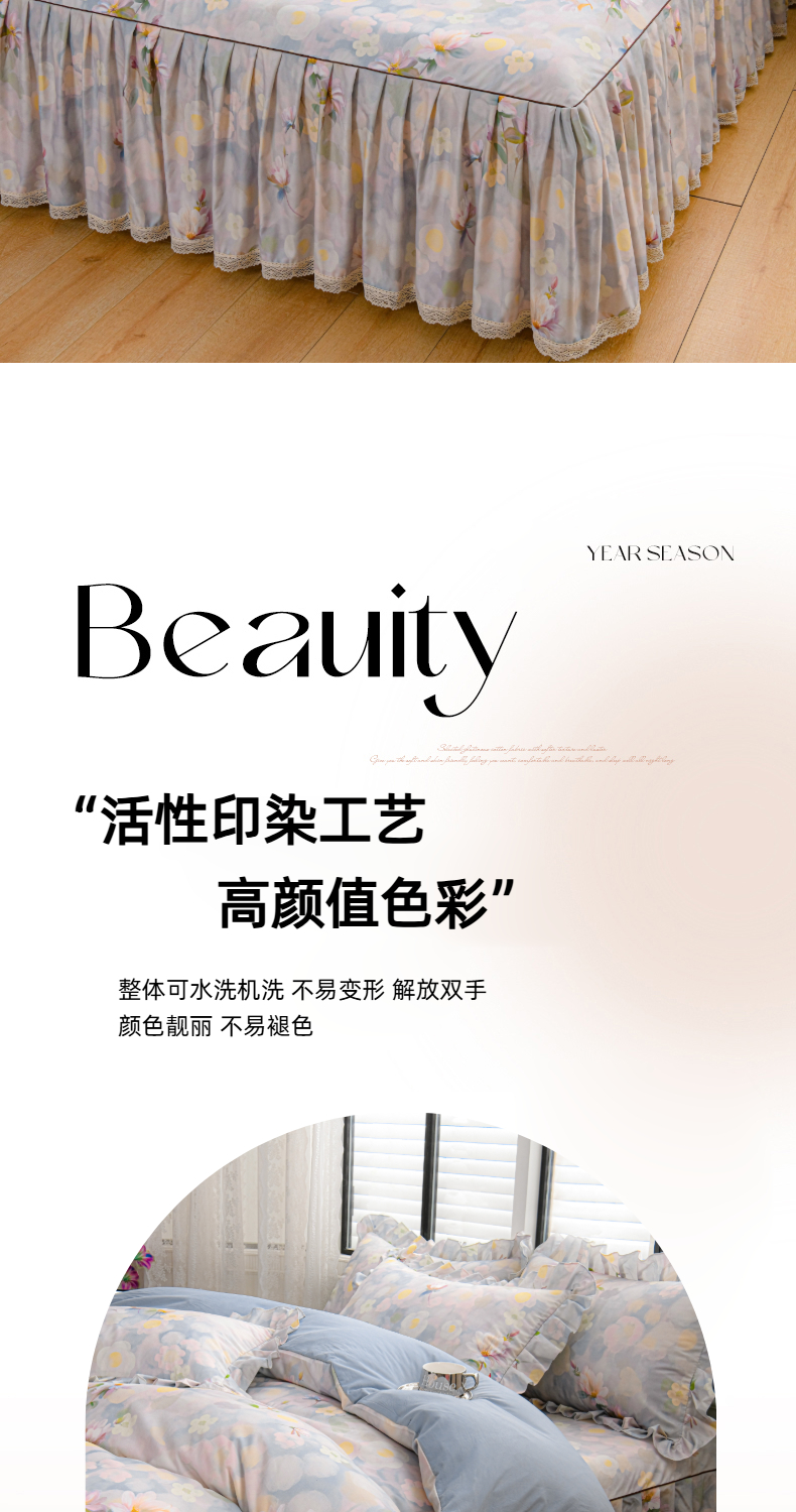 当前位置: 91家纺网 > 商品网购 > 床品套件 > 四件套 > 其它四件套 > 家之硕家纺 2025春夏新款床裙款四件套繁花似锦系列 静若繁花