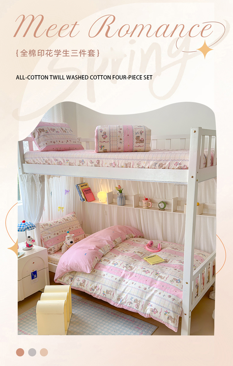 当前位置: 91家纺网 > 商品网购 > 床品套件 > 三件套 > 曼之夏 2025新款全棉纯棉印花学生宿舍上下铺三件套 奶昔小熊