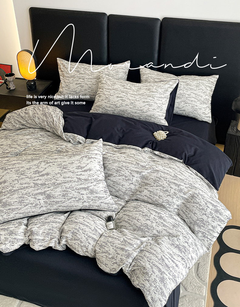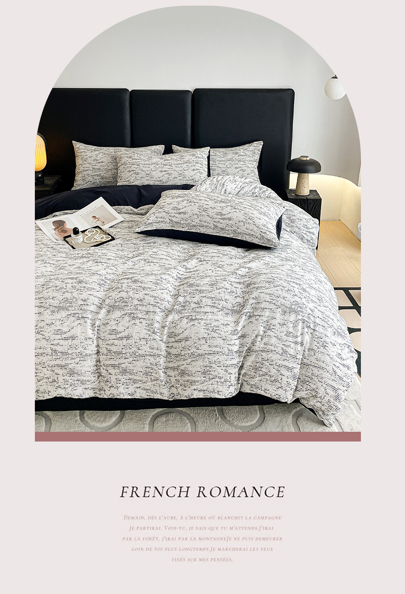 商品名称:静家居-简约原创家纺 2025新款全棉穿绳工艺大提花四件套-风格1 栀夏-黑