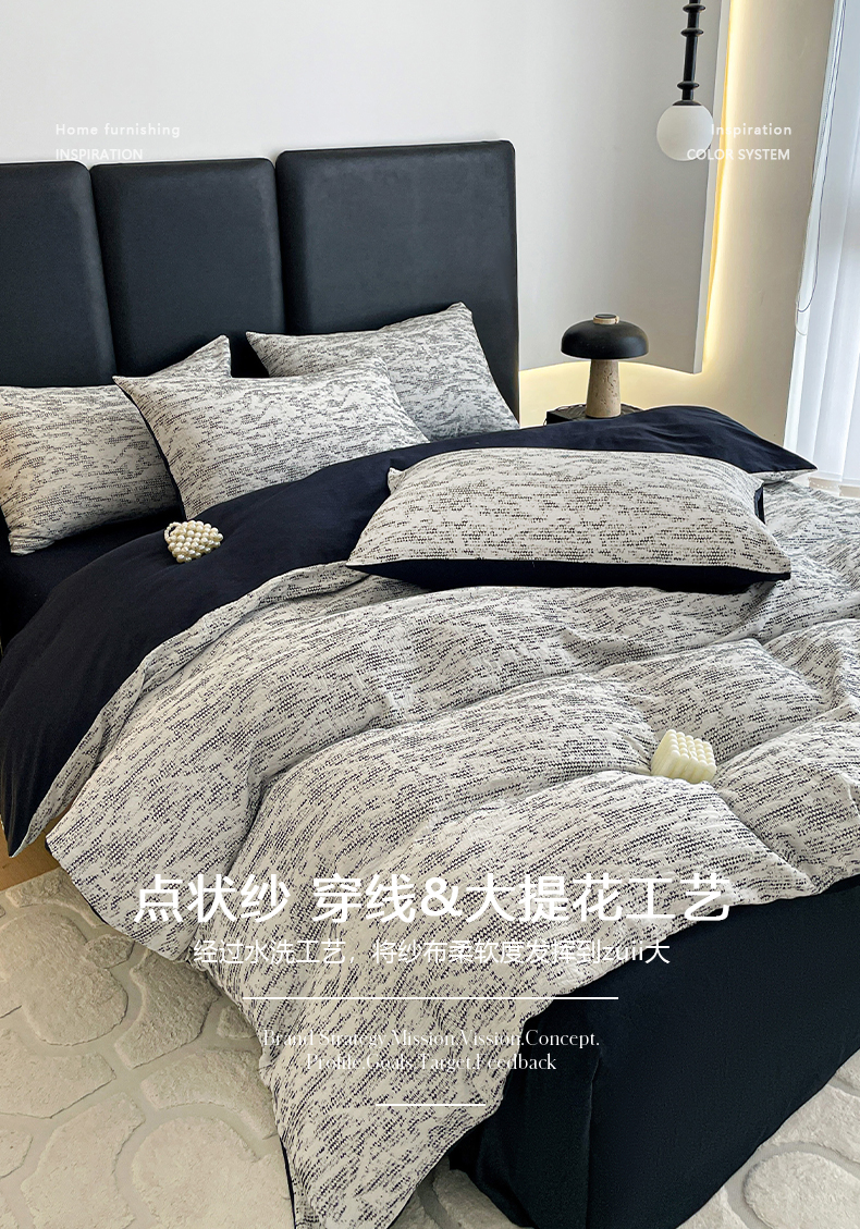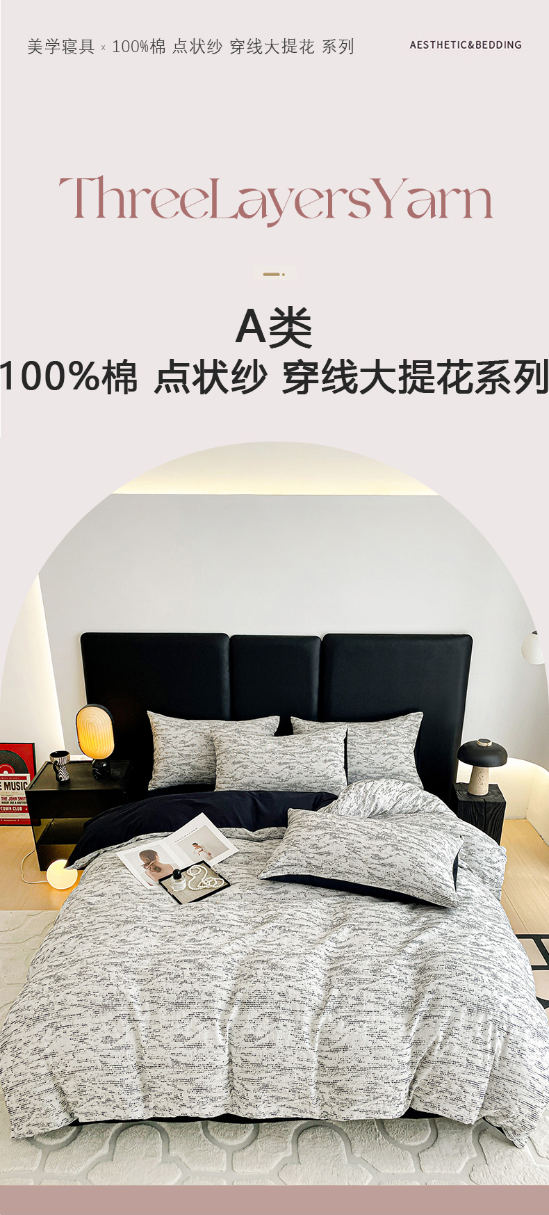 静家居-简约原创家纺 2025新款全棉穿绳工艺大提花四件套-风格1 栀夏-黑