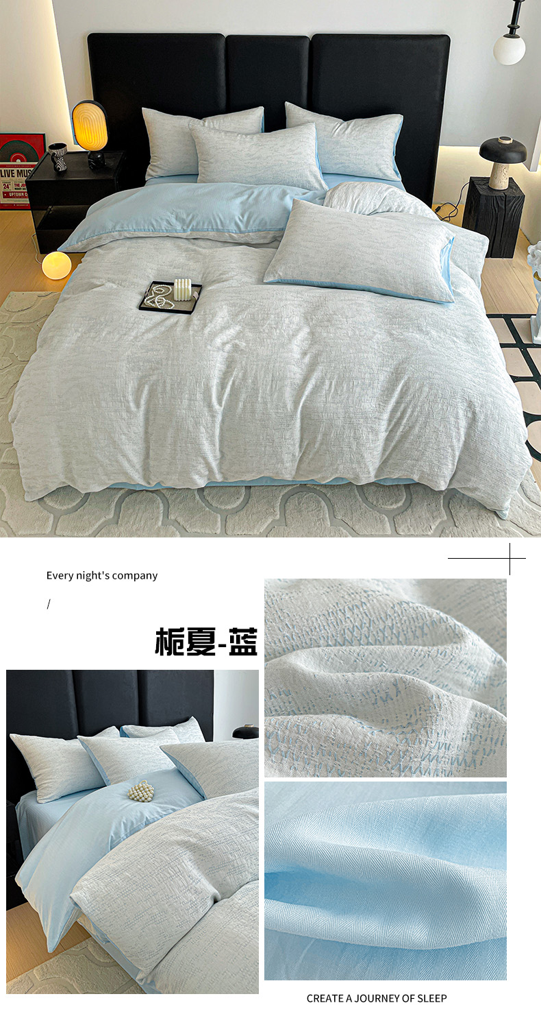 (总)静家居-简约原创家纺 四季款三层纱本色加厚提花四件套,本色-海盐蓝,本色-灰,本色-米咖,本色-松弛粉