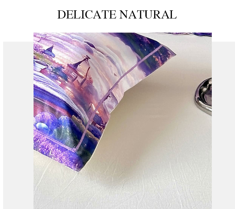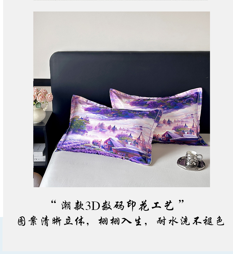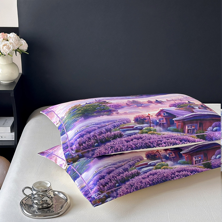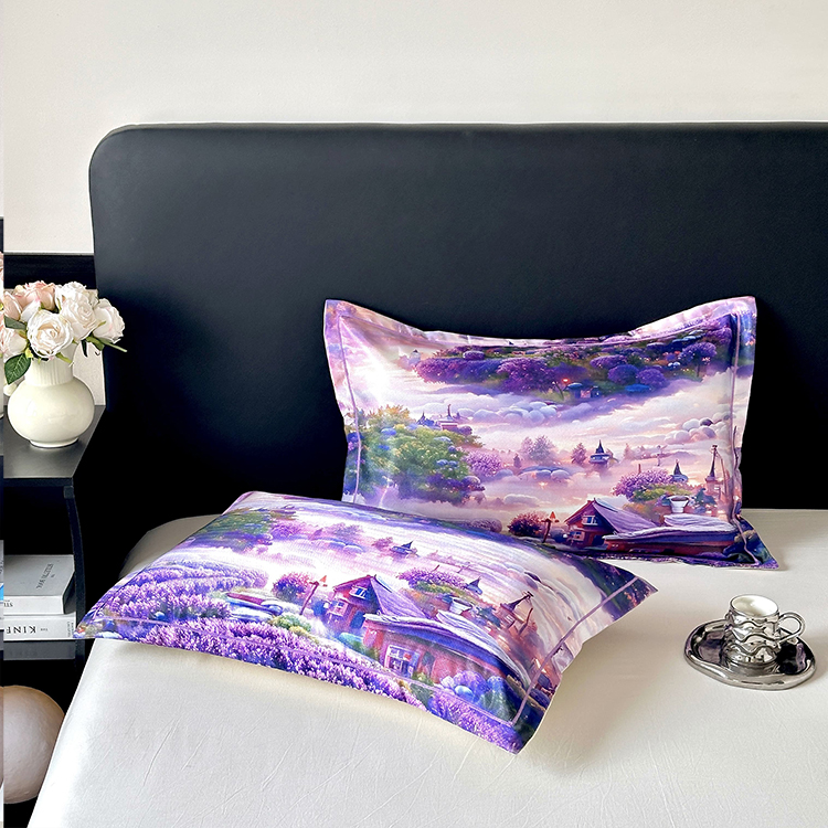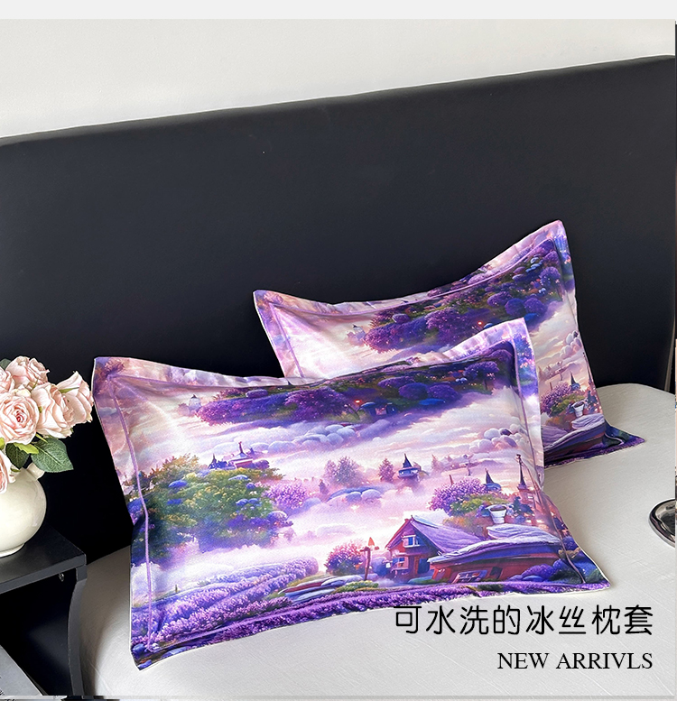 • 91家纺网 家纺一手货源 找家纺 乐居家纺 2025新款凉感高密冰丝双人印花枕套+内芯 薰衣草