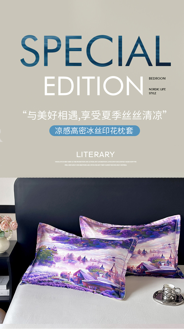 当前位置: 91家纺网 > 商品网购 > 床上用品 > 枕套 > 乐居家纺 2025新款凉感高密冰丝双人印花枕套+内芯 薰衣草