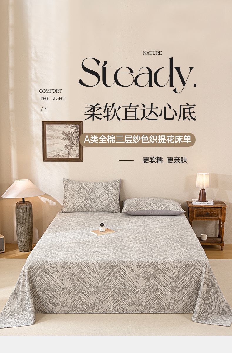 • 91家纺网 家纺一手货源 找家纺 灰鲸 2025新款全棉纯棉三层纱色织提花床单 本色-灰 91家纺网 家纺一手货源 找家纺 灰鲸 2025新款全棉纯棉三层纱色织提花床单 本色-灰