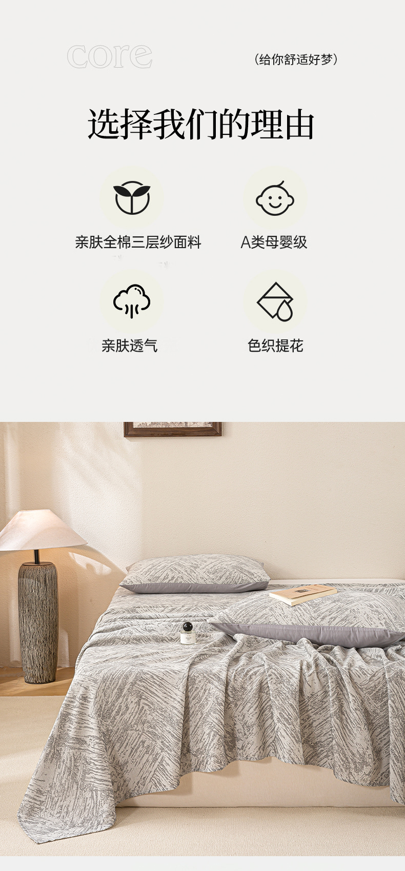 当前位置: 91家纺网 > 商品网购 > 床上用品 > 床单 > 灰鲸 2025新款全棉纯棉三层纱色织提花床单 本色-灰