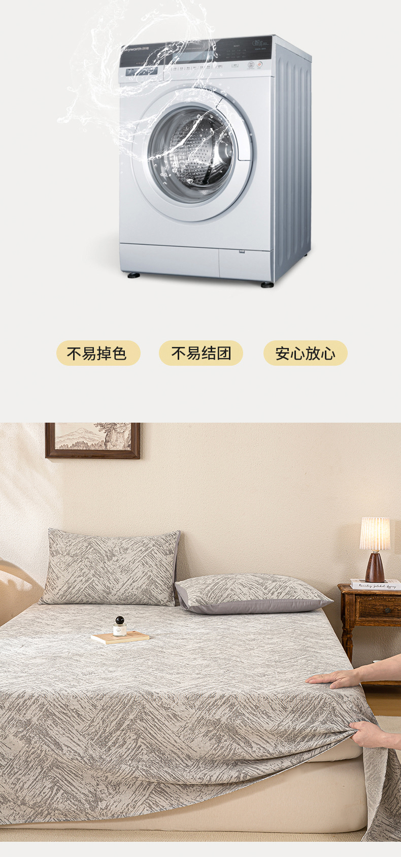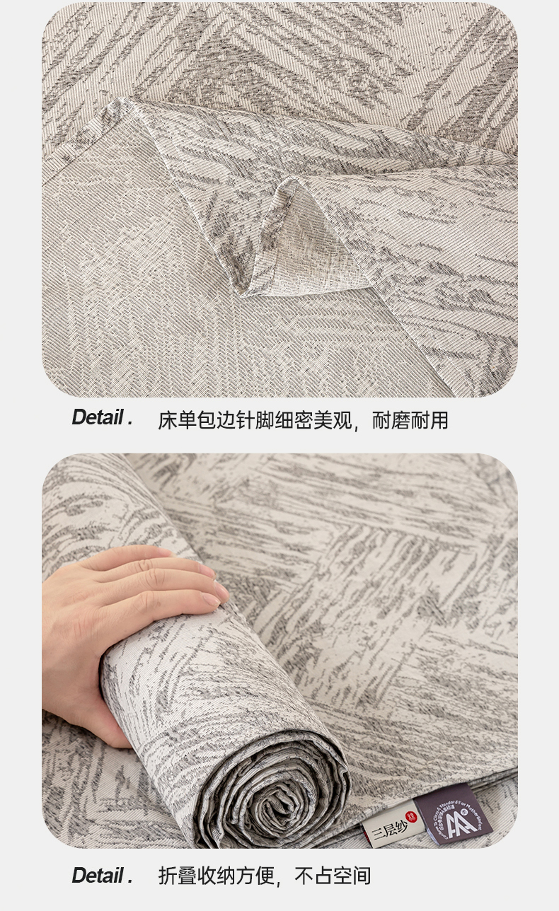 • 91家纺网 家纺一手货源 找家纺 灰鲸 2025新款全棉纯棉三层纱色织提花床单 本色-灰