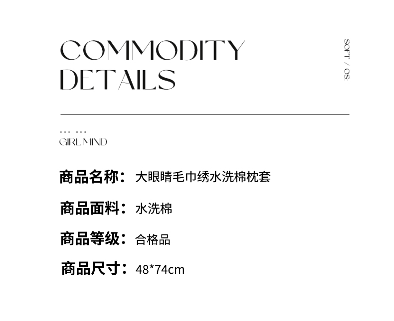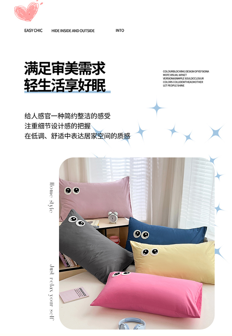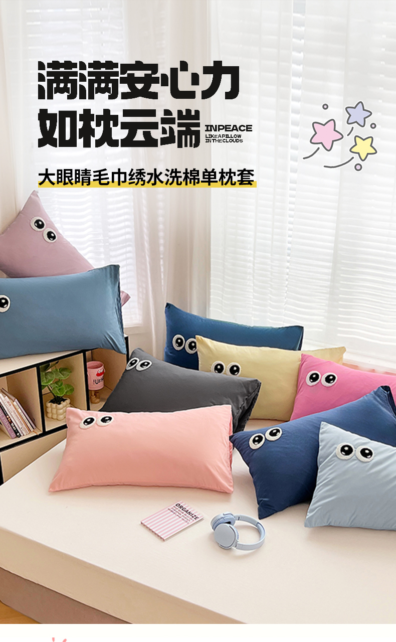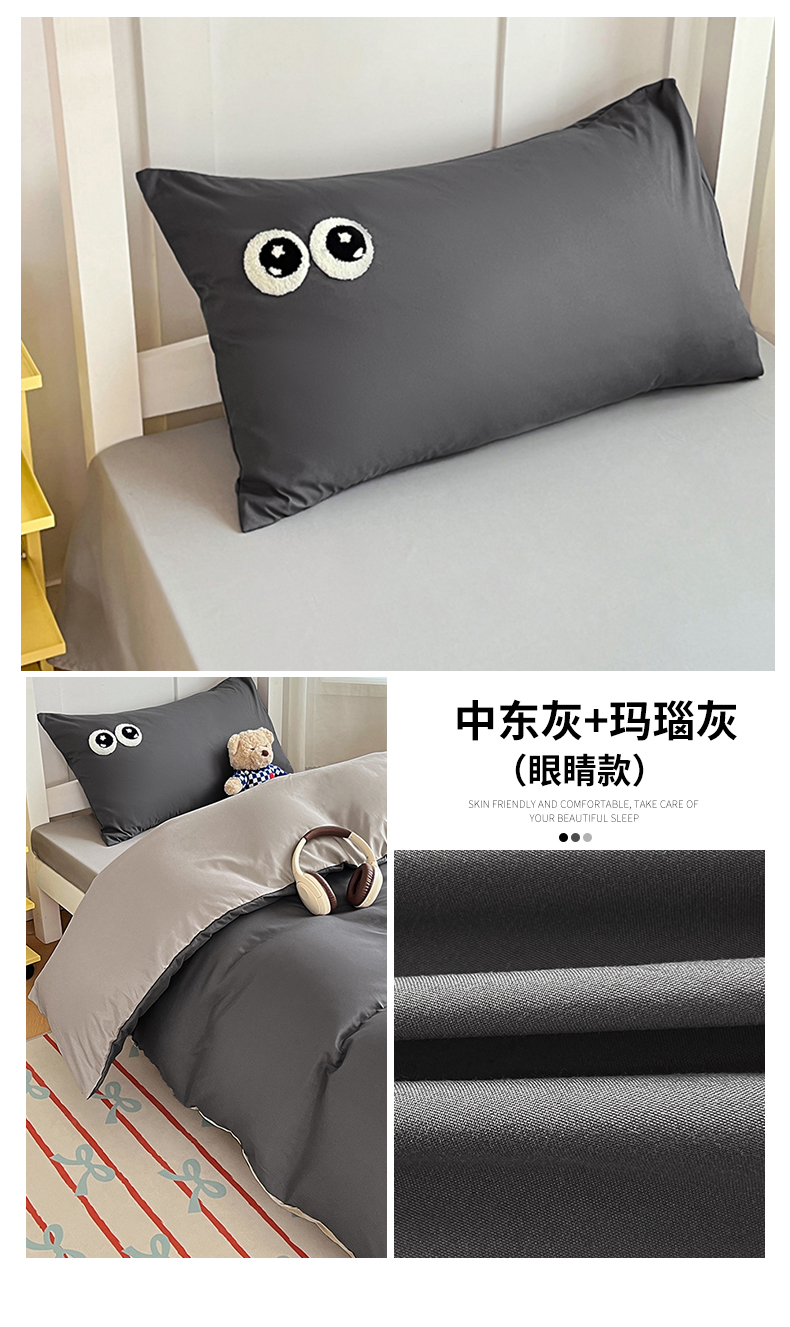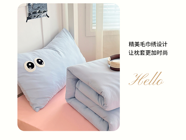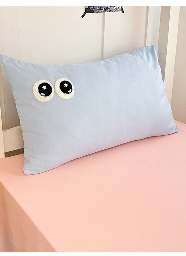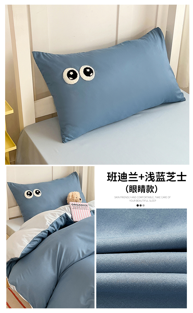 商品名称:(总)2025新款多巴胺大眼睛毛巾绣纯色水洗棉双拼学生宿舍单枕套三件套寝室四件套四季款
