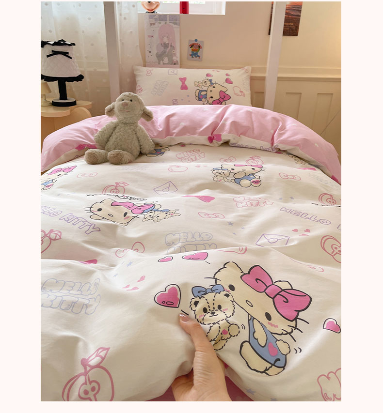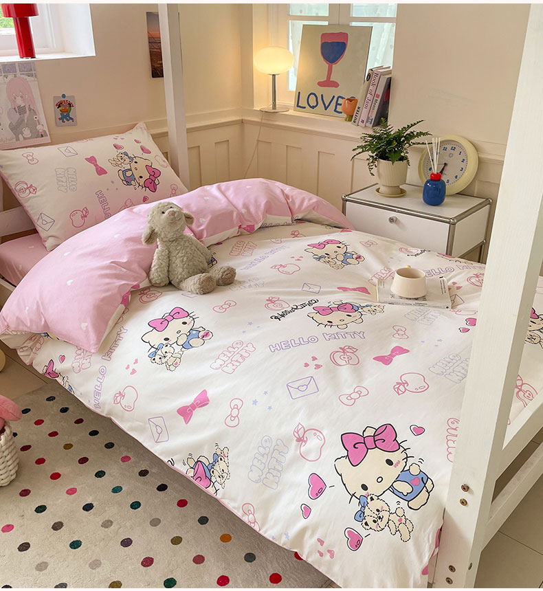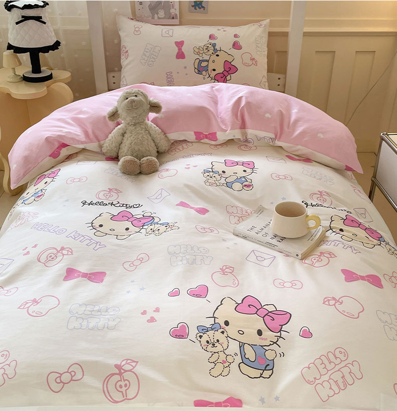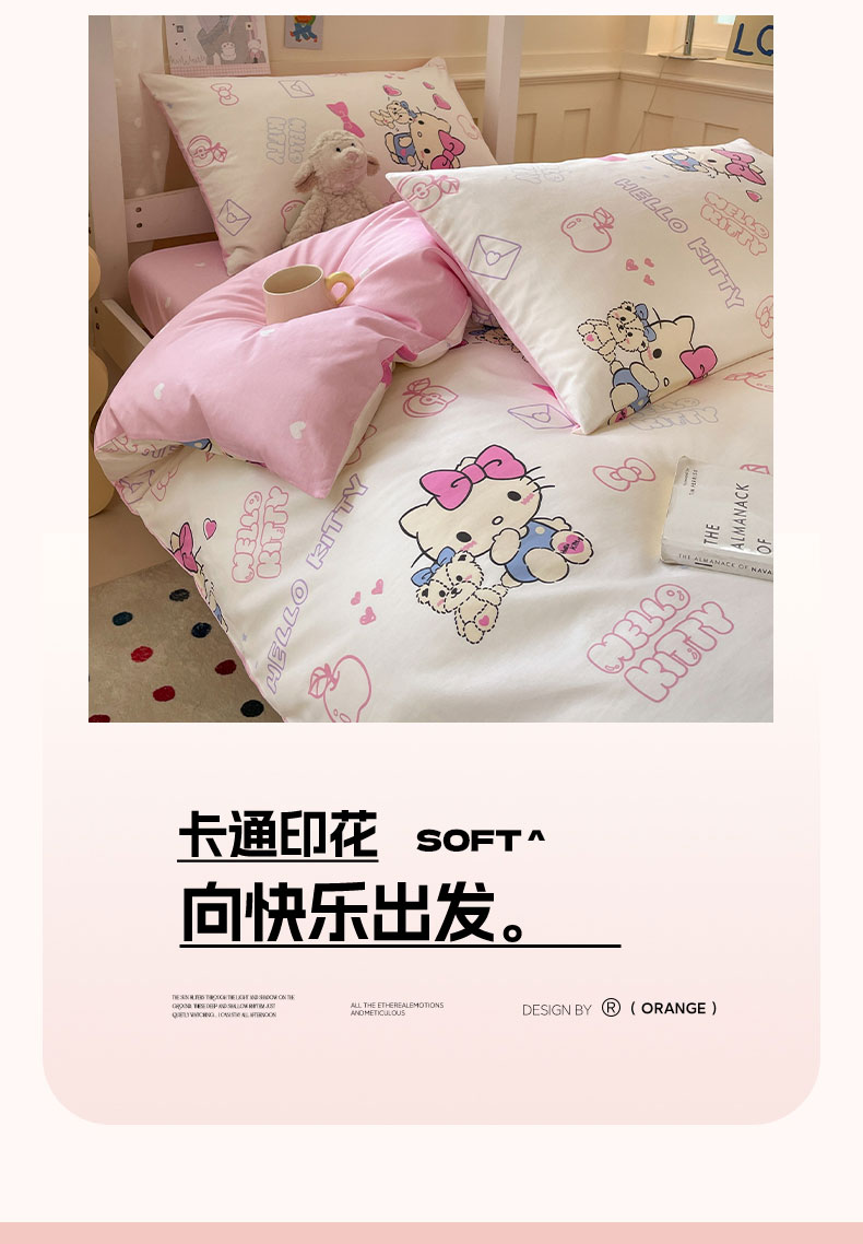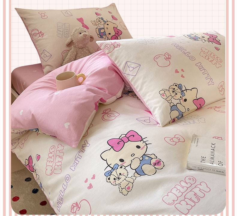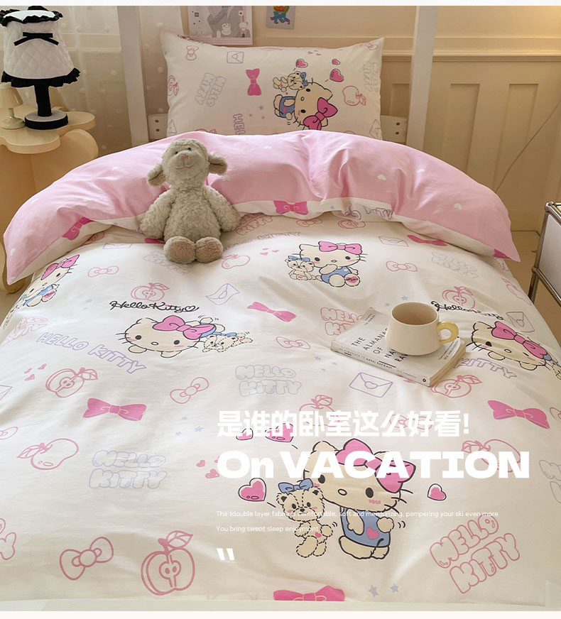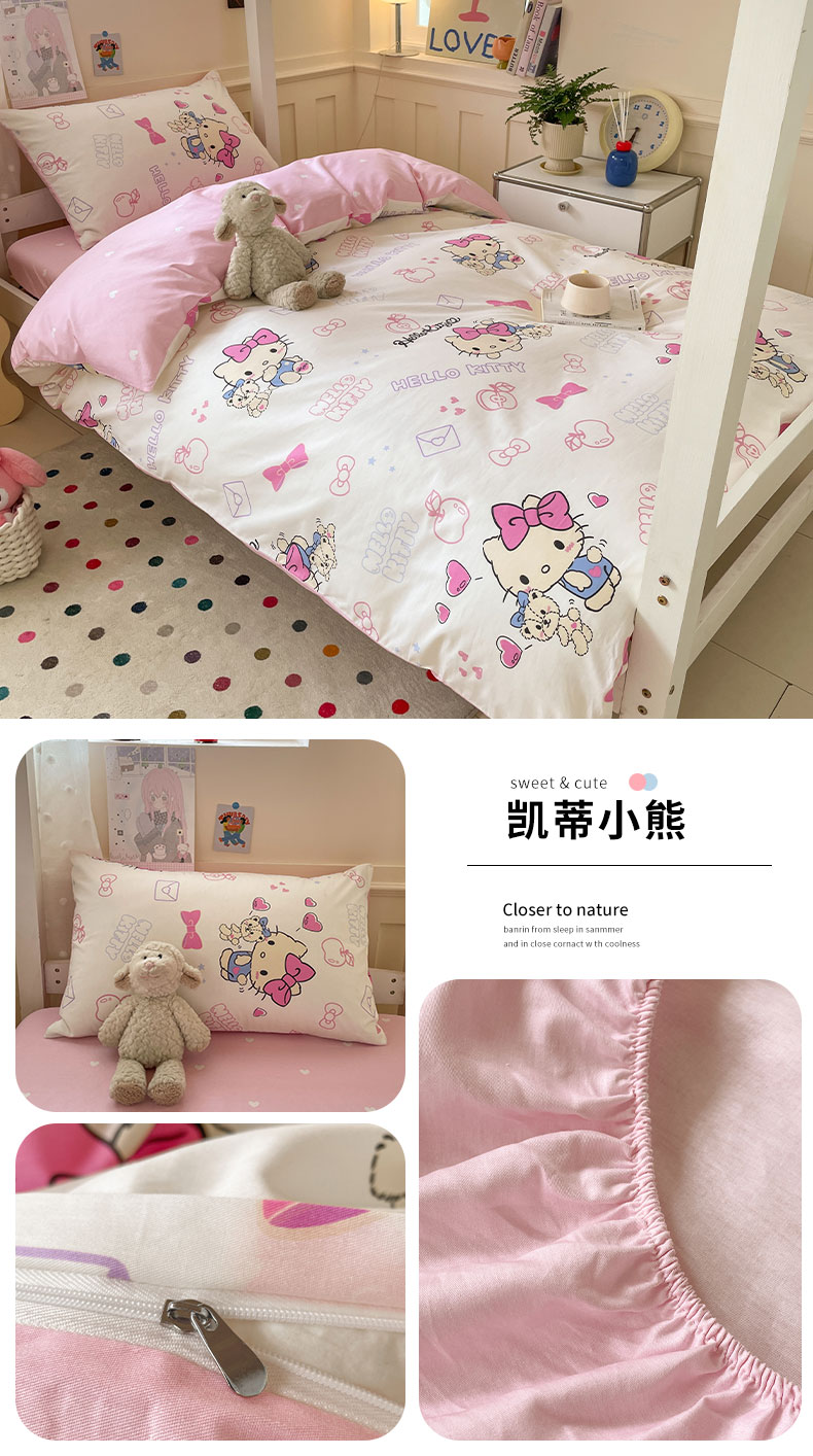 商品名称:蓝邻家纺 2025年新款三丽鸥正版授权全棉印花四件套系列-学生床 凯蒂小熊