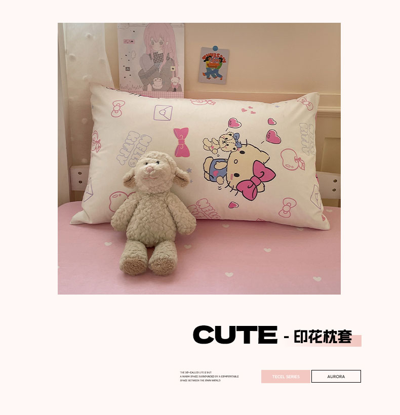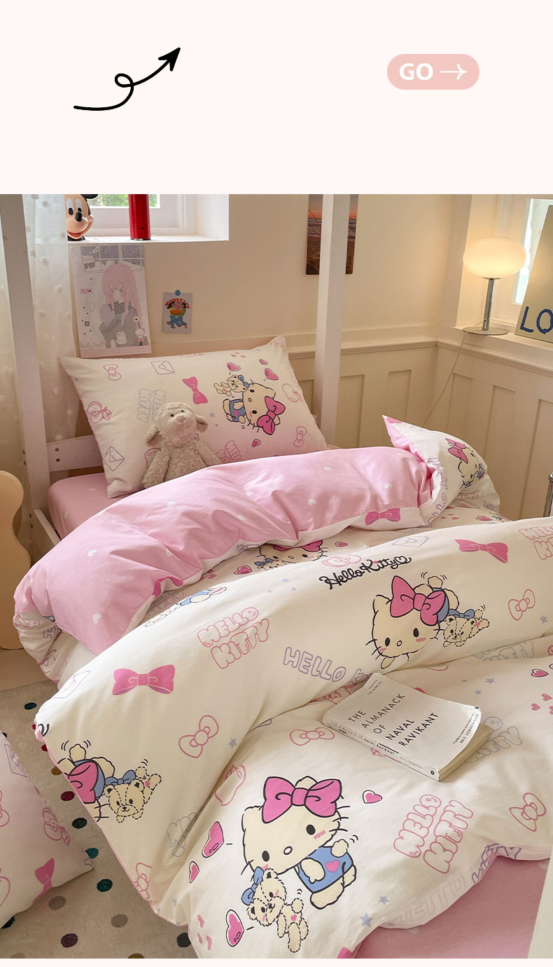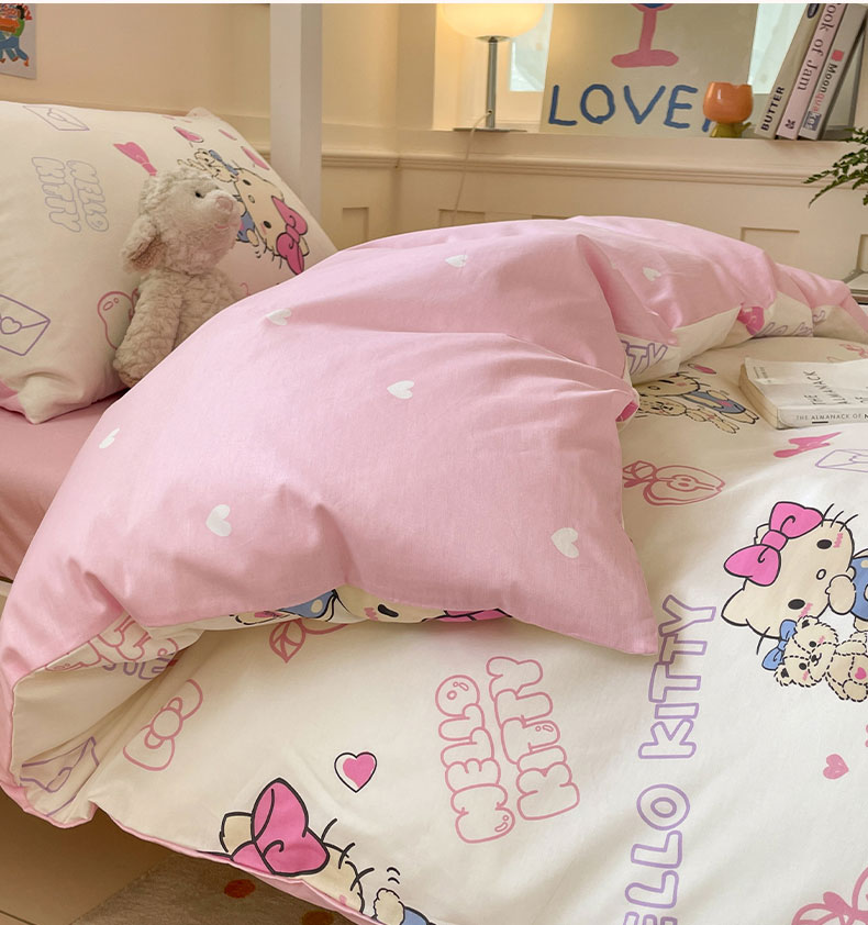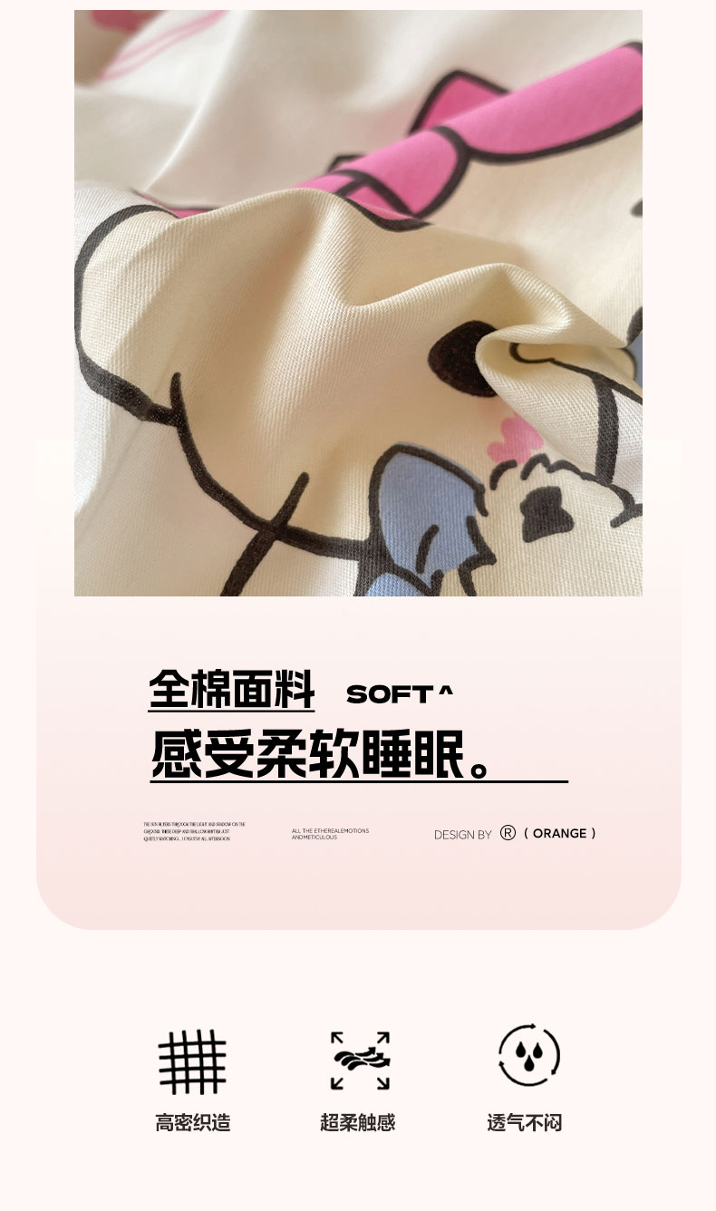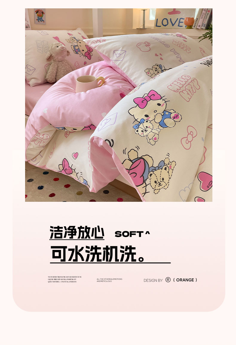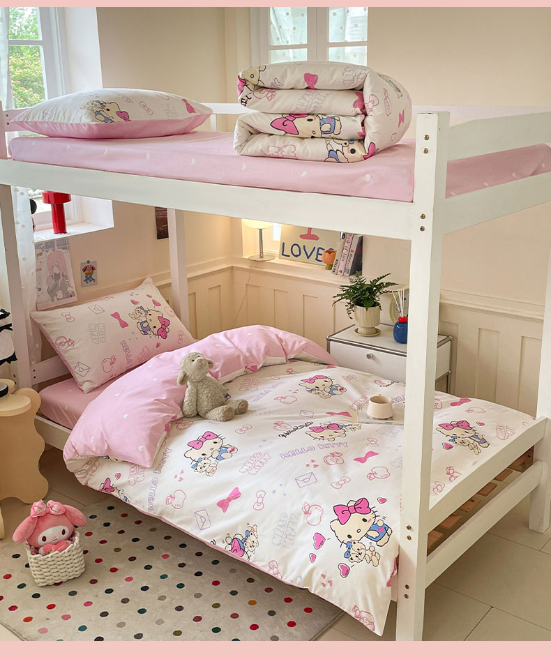 商品名称:蓝邻家纺 2025年新款三丽鸥正版授权全棉印花四件套系列-学生床 凯蒂小熊