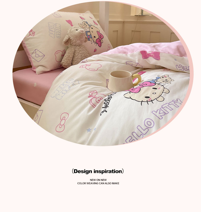 蓝邻家纺 2025年新款三丽鸥正版授权全棉印花四件套系列-学生床 凯蒂小熊
