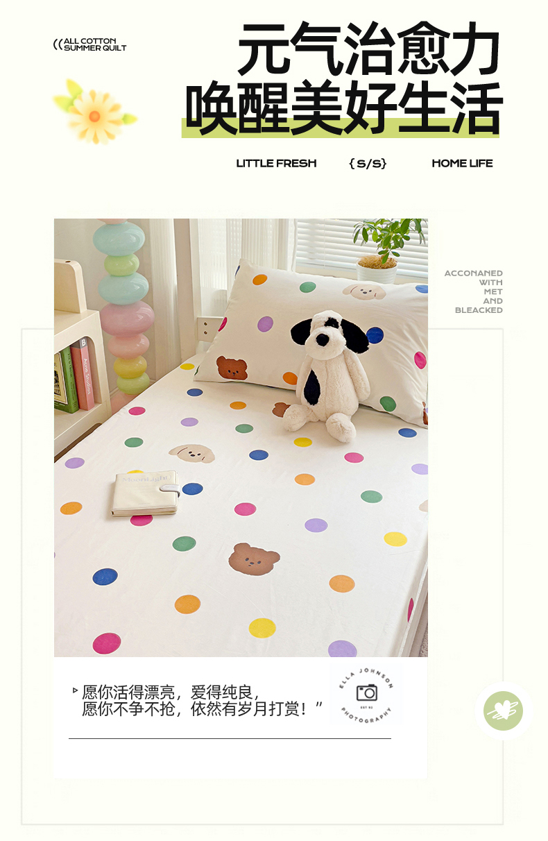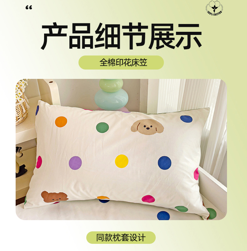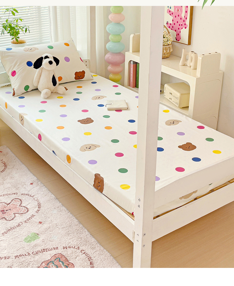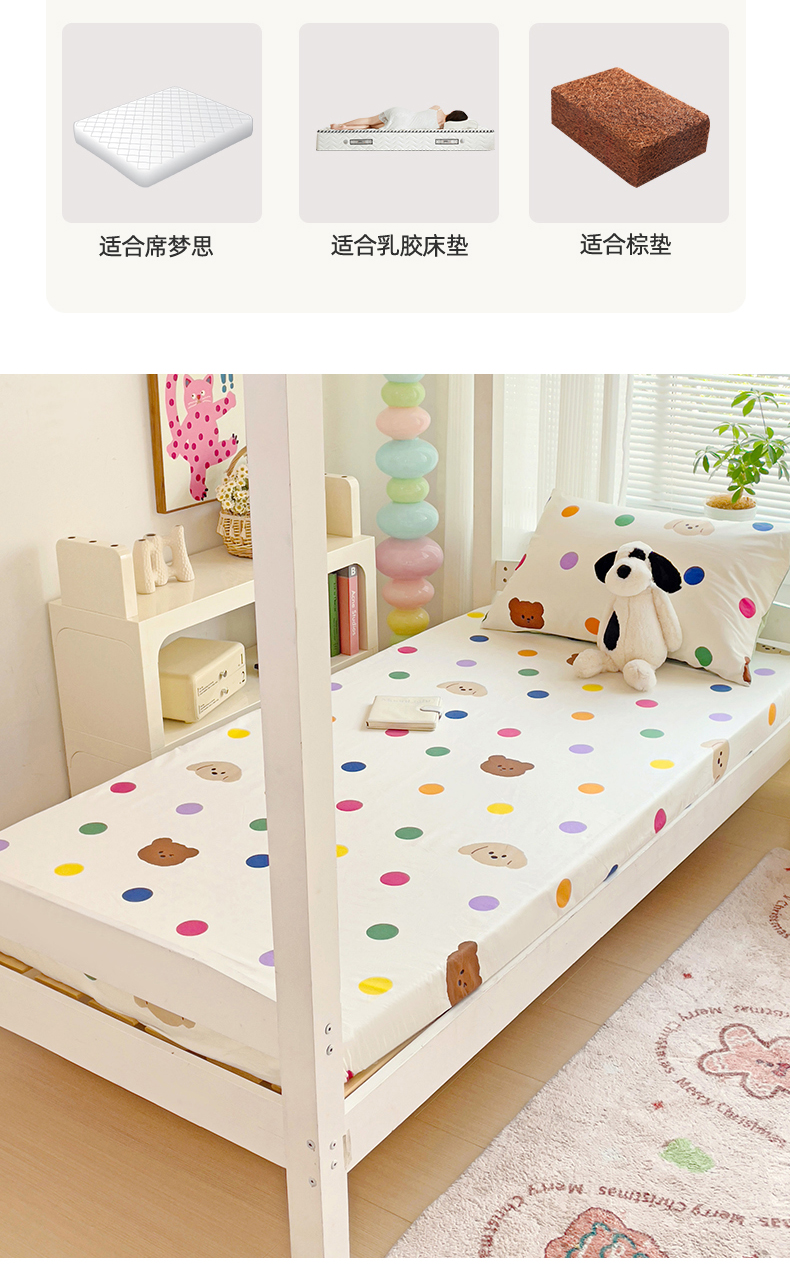 • 91家纺网 家纺一手货源 找家纺 名兮家居 2025新款全棉纯棉13372学生印花上下铺床笠单床笠单品床笠单件床笠 波点小熊