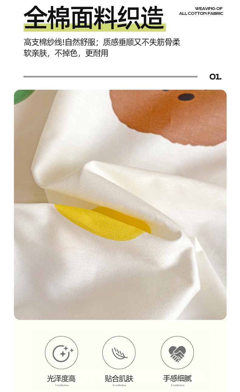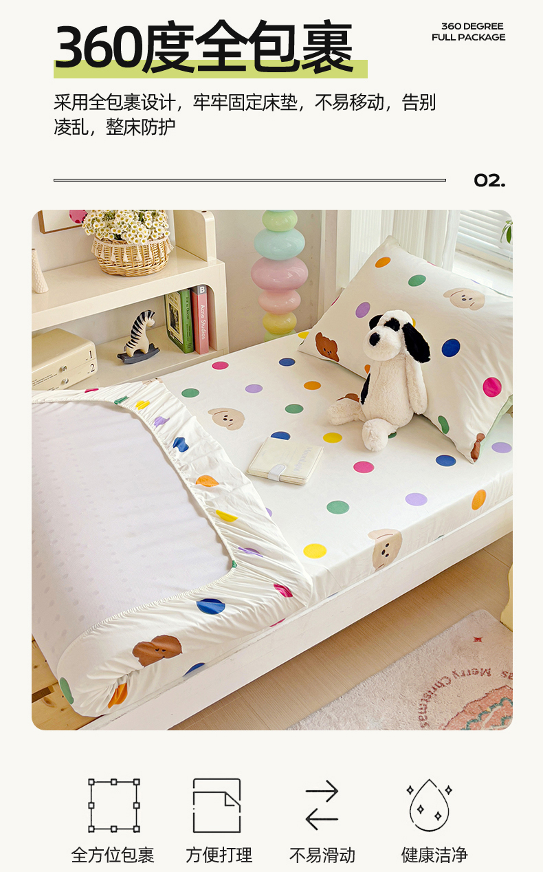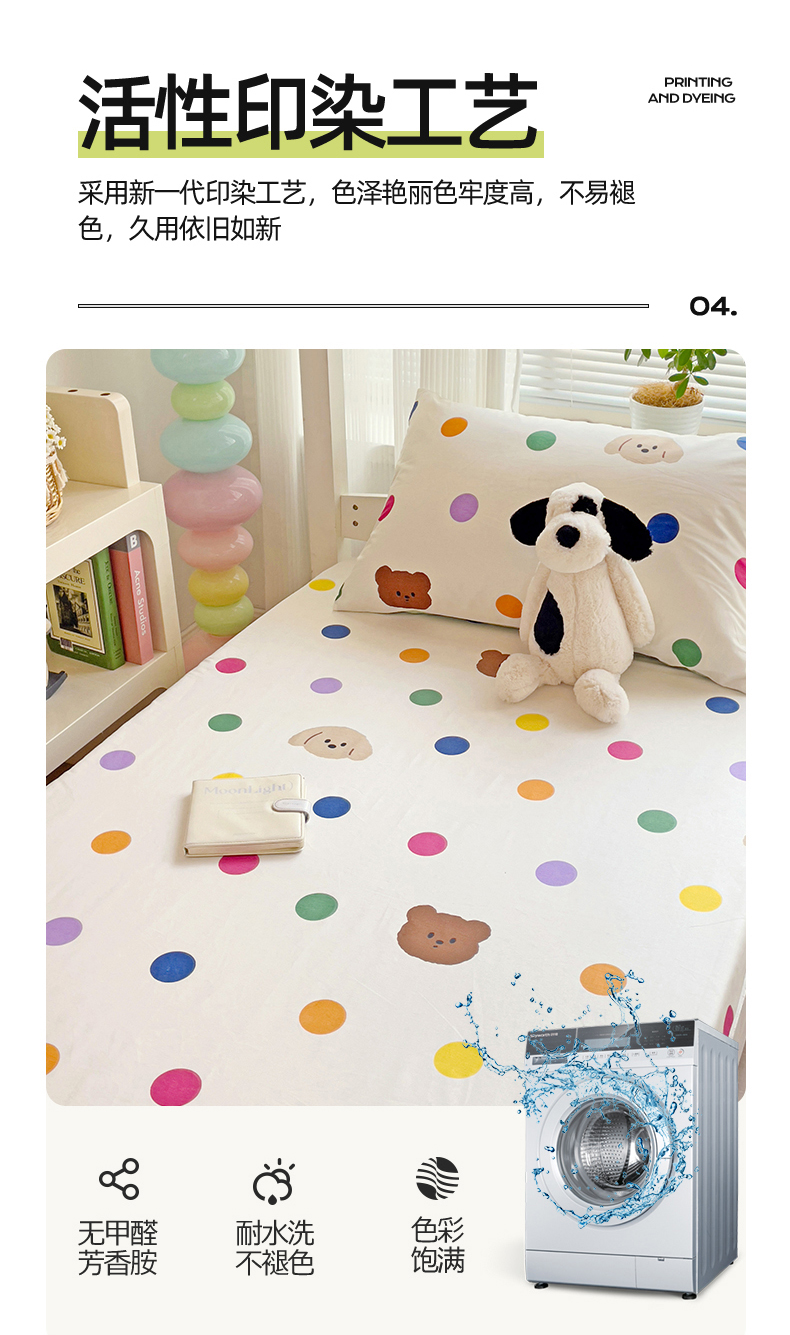 • 91家纺网 家纺一手货源 找家纺 名兮家居 2025新款全棉纯棉13372学生印花上下铺床笠单床笠单品床笠单件床笠 波点小熊