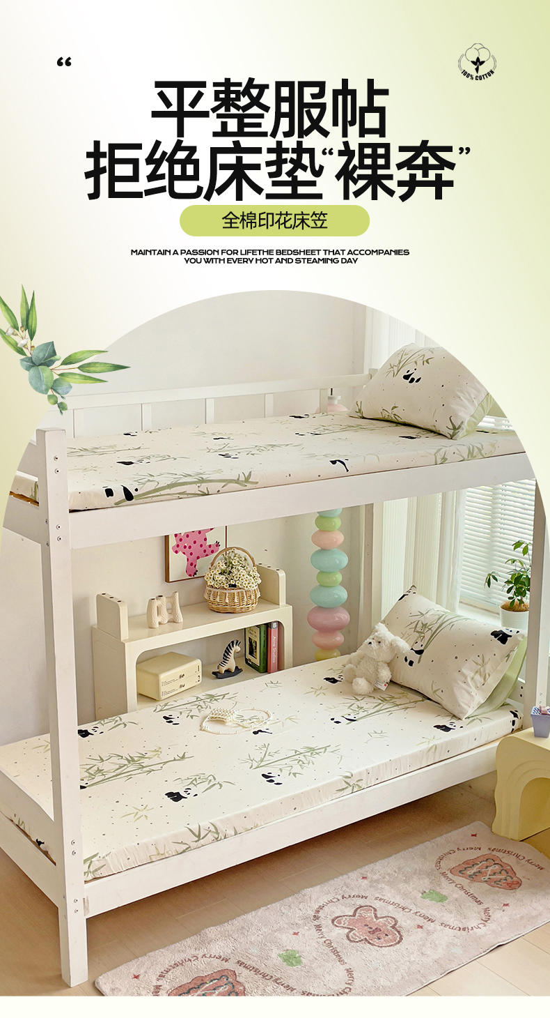 名兮家居 2025新款全棉纯棉13372学生印花上下铺床笠单床笠单品床笠单件床笠 熊猫家园