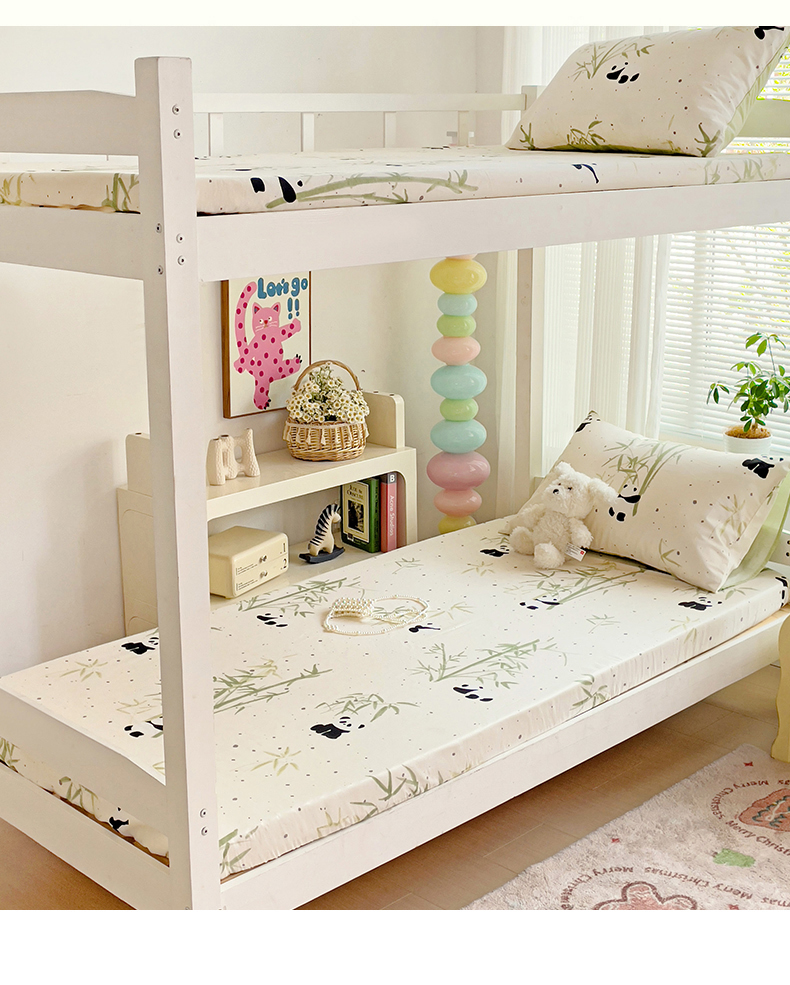 • 91家纺网 家纺一手货源 找家纺 名兮家居 2025新款全棉纯棉13372学生印花上下铺床笠单床笠单品床笠单件床笠 熊猫家园