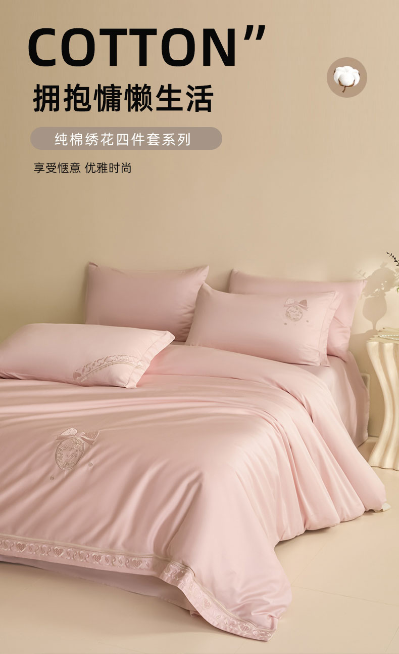 东方合美(原:皇家传奇) 2025新款轻奢长绒棉纯棉刺绣款四件套 甜心