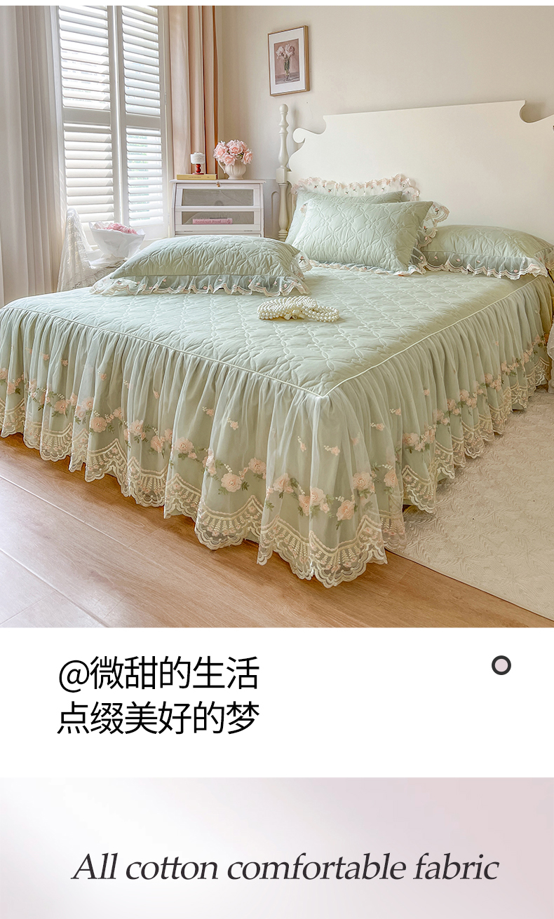 网红馆 2025新款蕾丝花边全棉床裙晨暮花间系列 麦绿