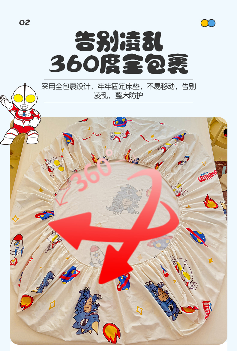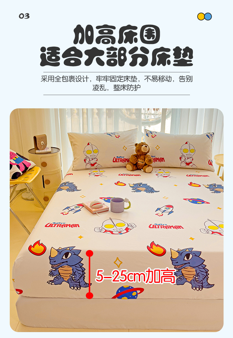 名兮家居 2025新款全棉纯棉13372经典奥特曼-三丽鸥成人床床笠单件单床笠【含防伪标】 咸蛋超人