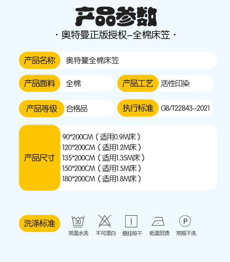 • 91家纺网 家纺一手货源 找家纺 名兮家居 2025新款全棉纯棉13372经典奥特曼-三丽鸥成人床床笠单件单床笠【含防伪标】 咸蛋超人