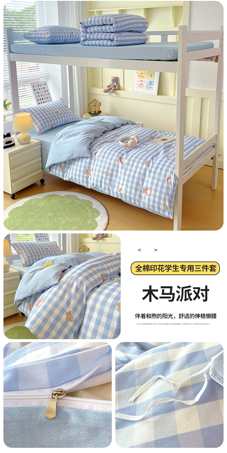 (总)悦织湾家纺 2025新款全棉100%纯棉13376高密度纯色双拼学生三件套活性环保印染宿舍,艾丽卡-冰川蓝,艾丽卡-粉,艾丽卡-灰,艾丽卡-蓝,派对熊-湖蓝,派对熊-蜜桃粉,派对熊-奶油黄,派对熊-天空蓝
