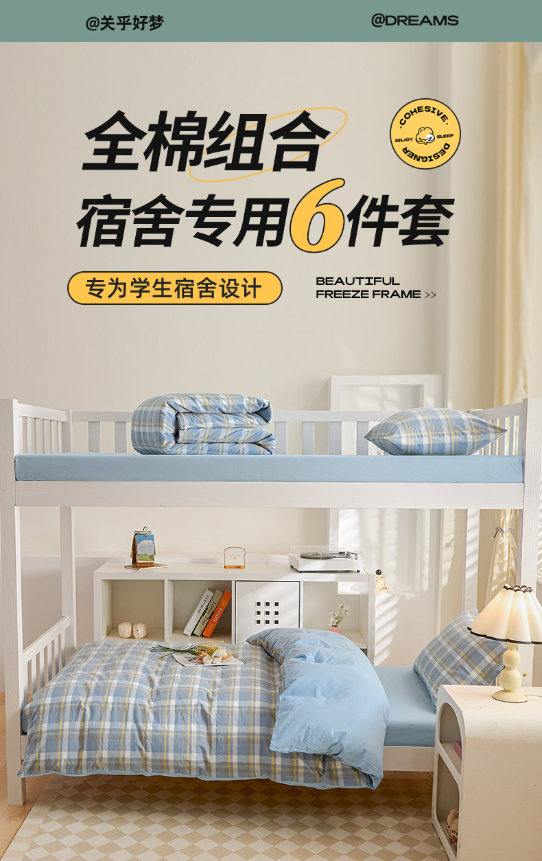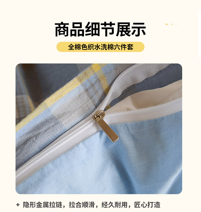 商品名称:吾诺2025新款 色织全棉学生组合大礼包三件套四件套 简希-蓝