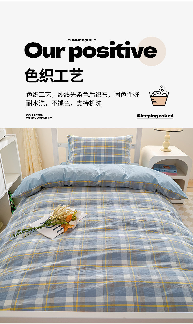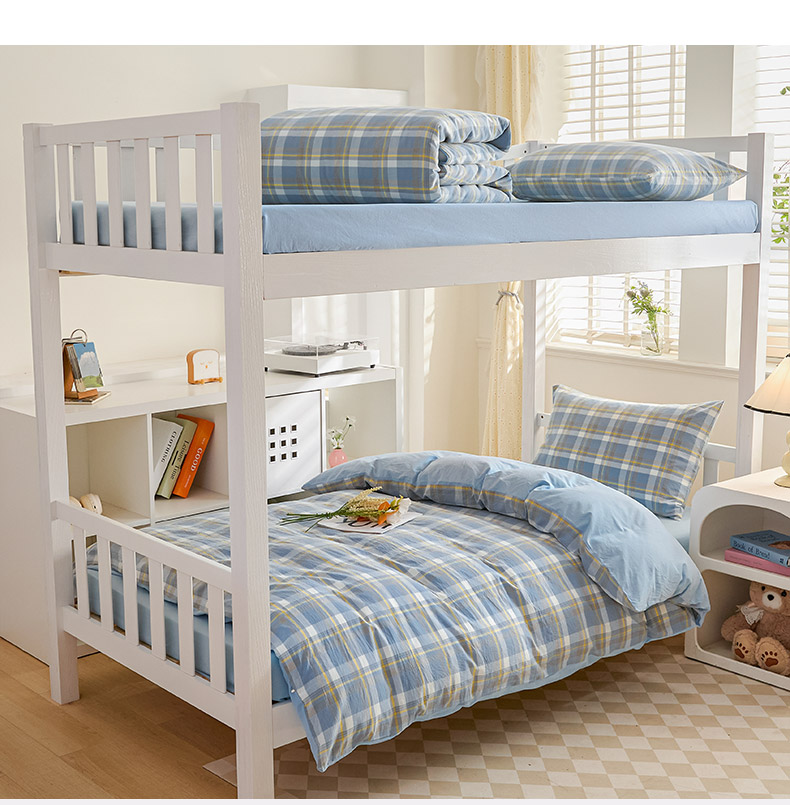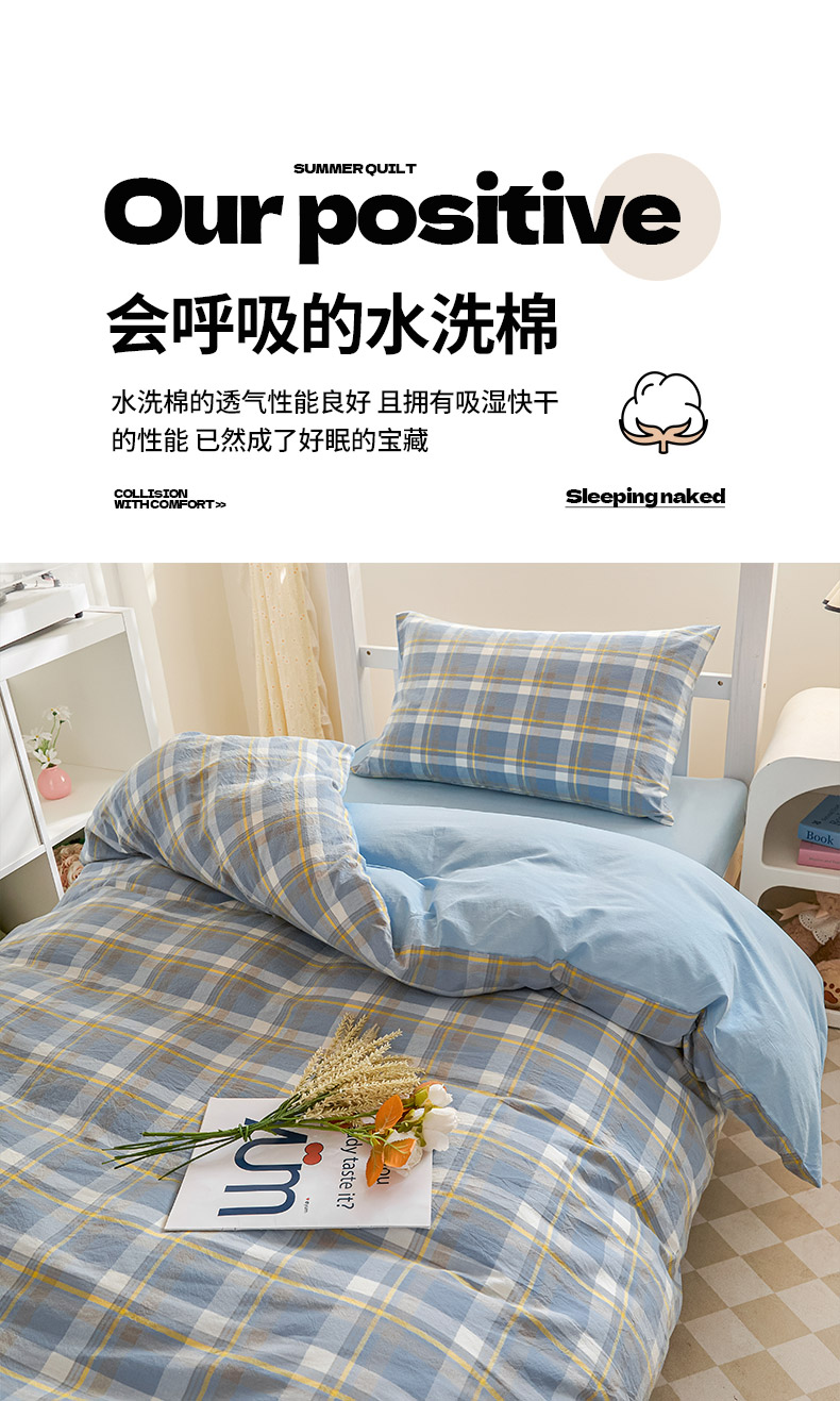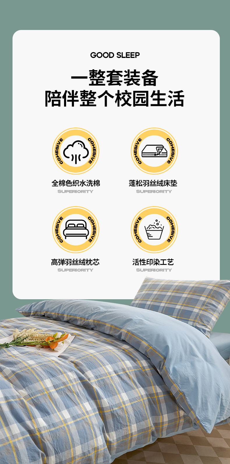 吾诺2025新款 色织全棉学生组合大礼包三件套四件套 简希-蓝