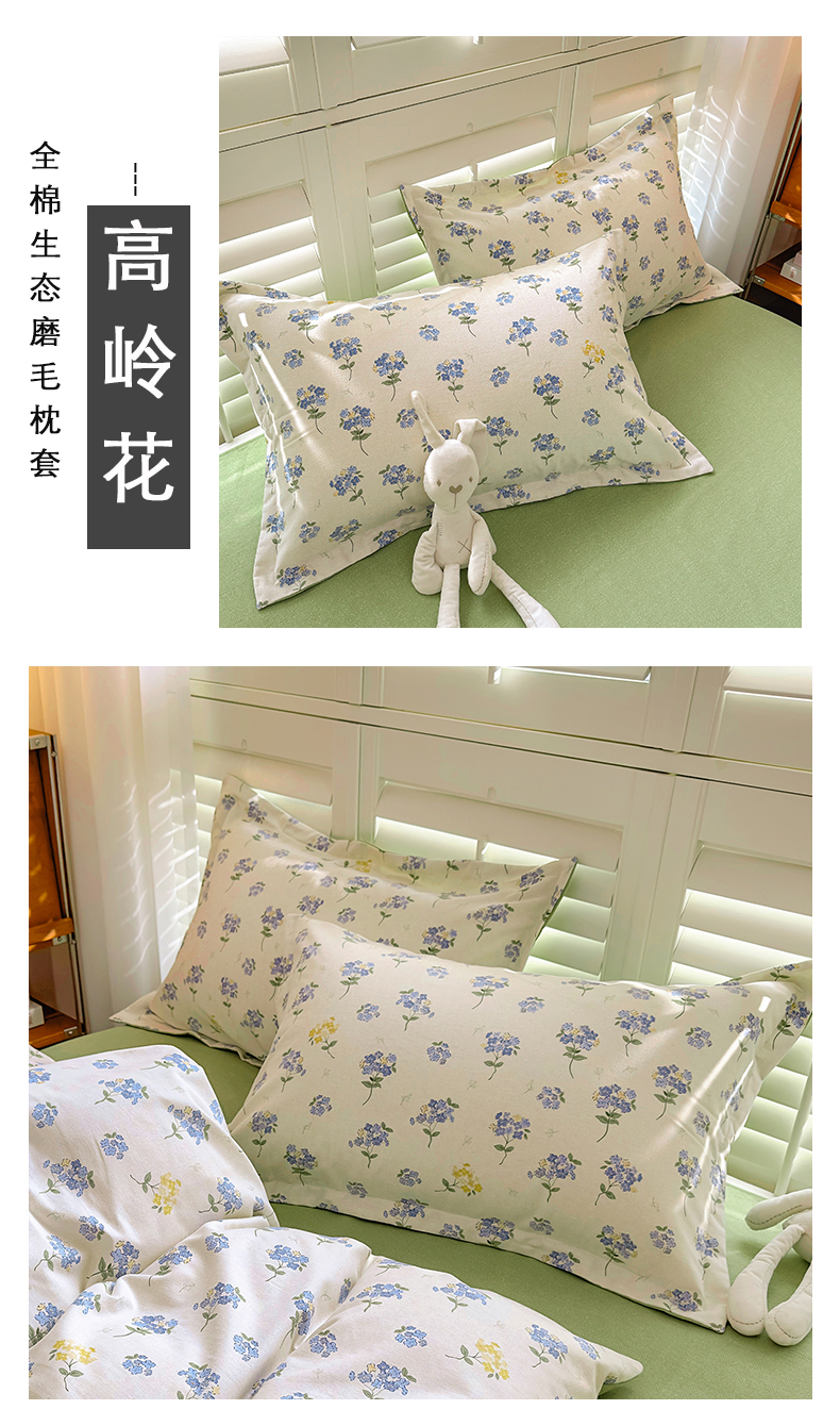 (总)百寐 2025新款秋冬全棉生态磨毛印花单品枕套48*74cm单只一对枕芯保护套,高岭花,花满径,花诺柔,花千朵,锦绣绿,兰郁香,落山秋,玫瑰露,萌萌狗,墨如玉,宁梵西,牵牛花,叹花郁,小甜心