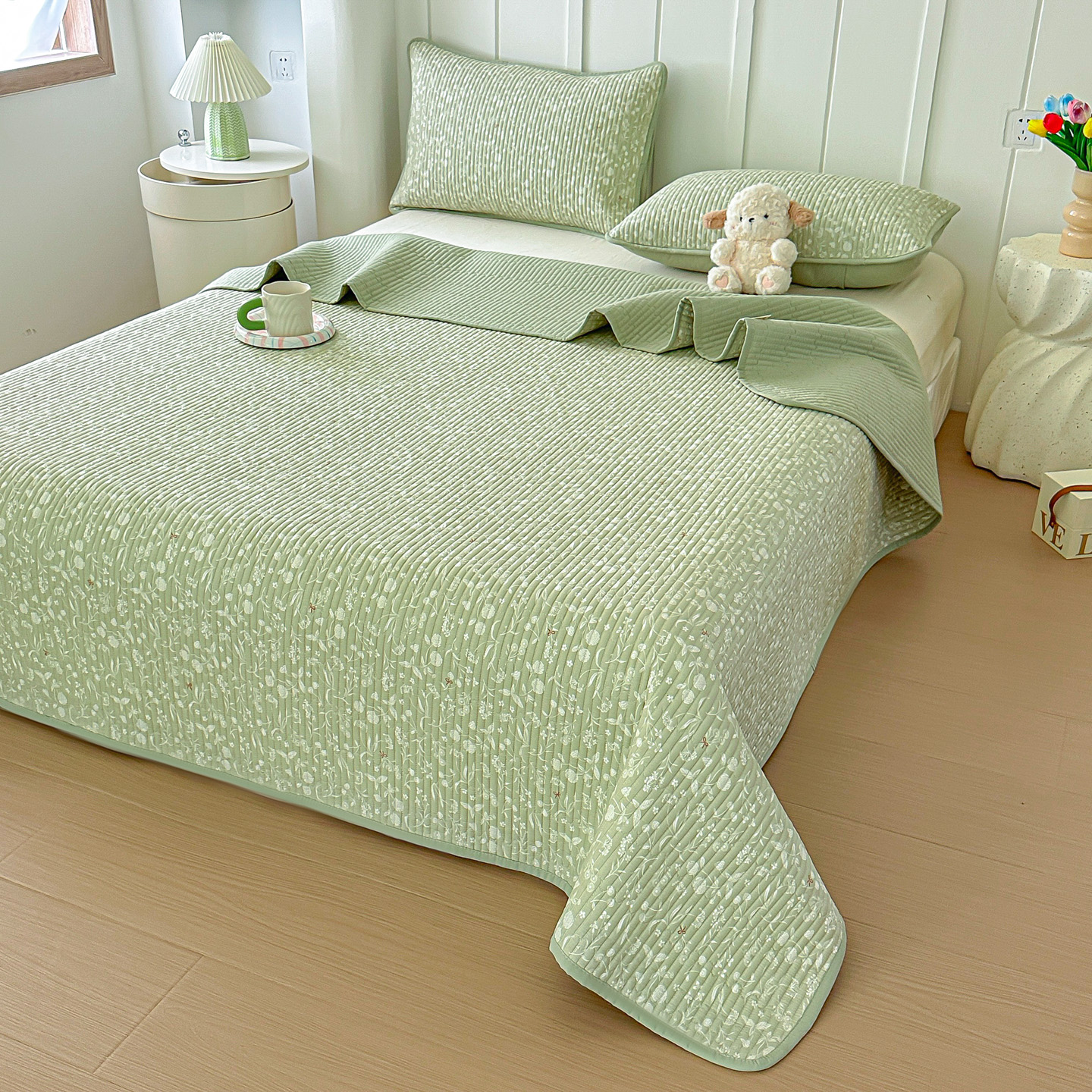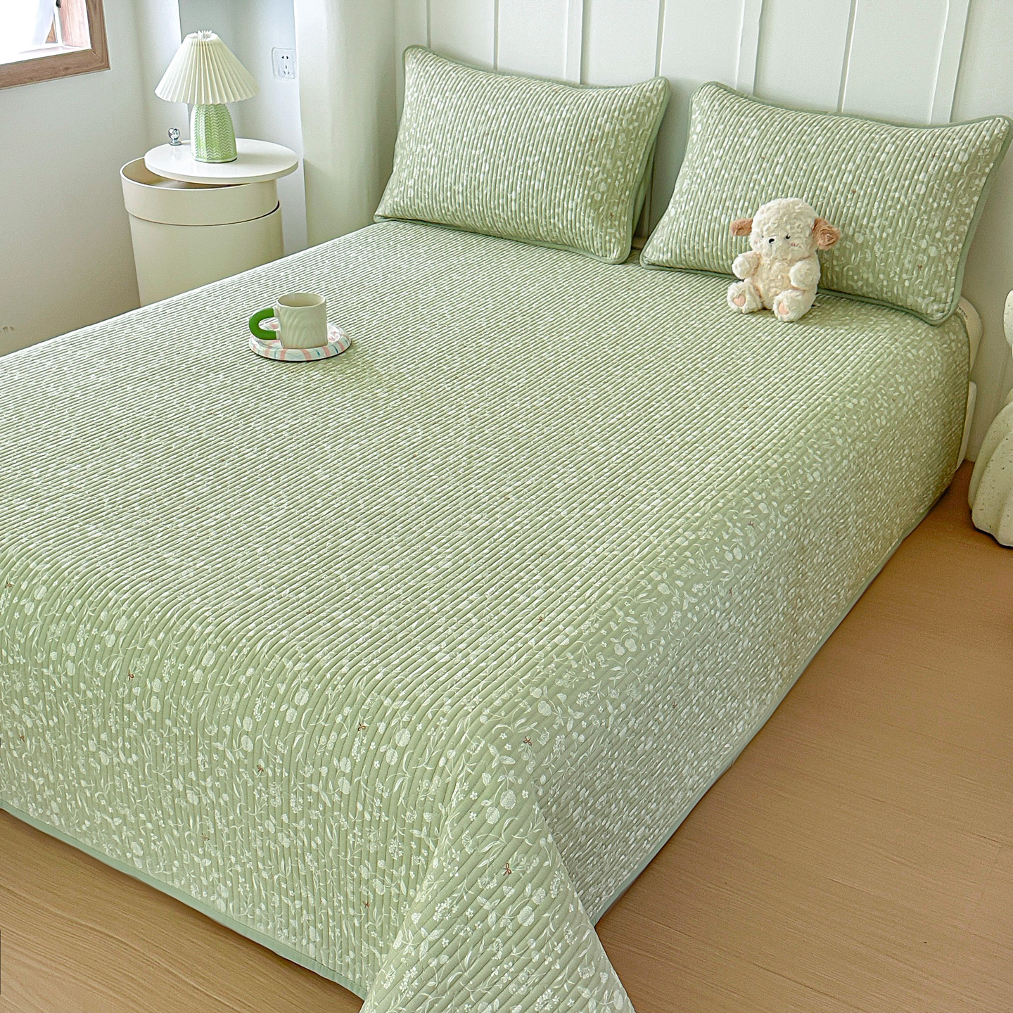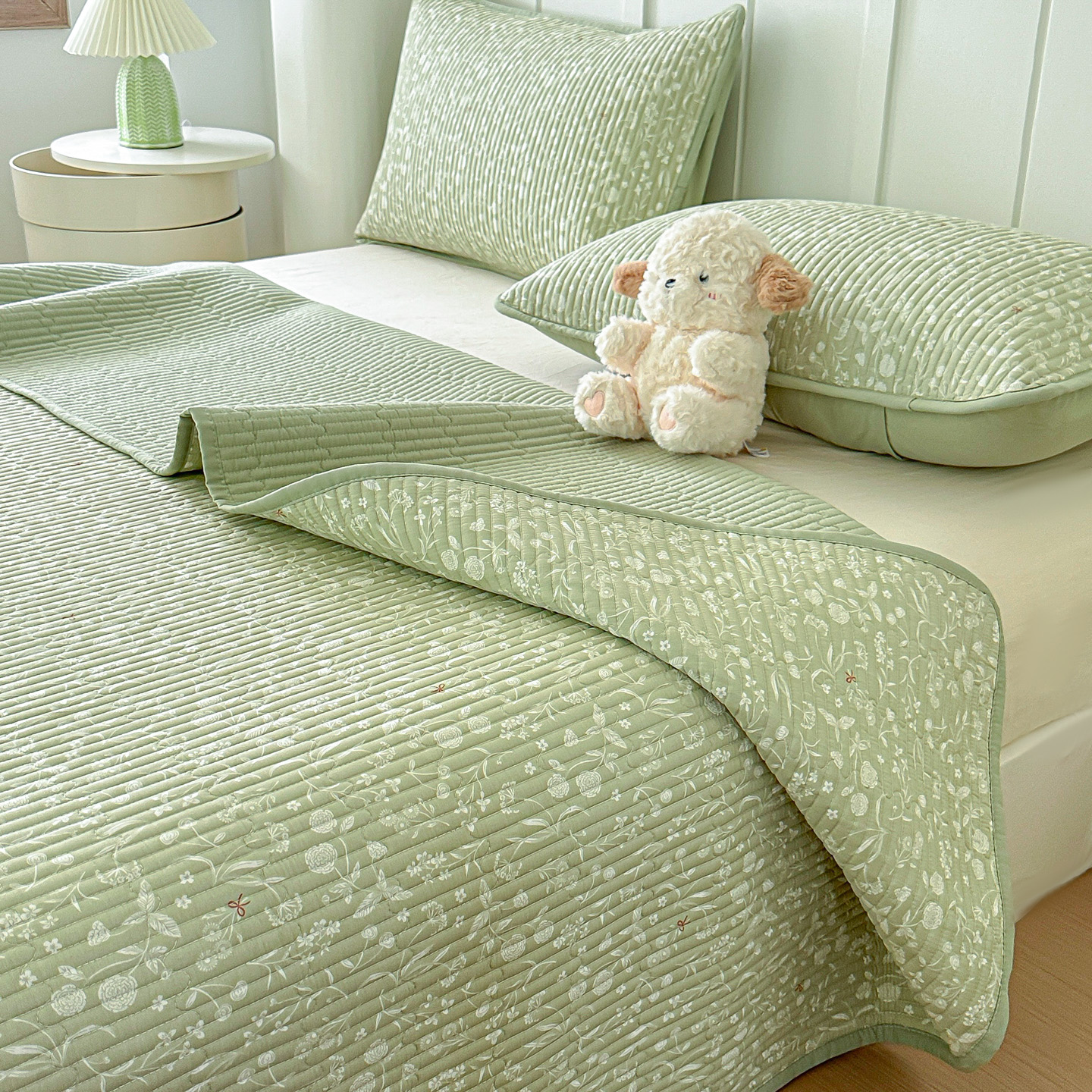 橘夏家纺 2025新款全棉床盖三件套 悠然绿