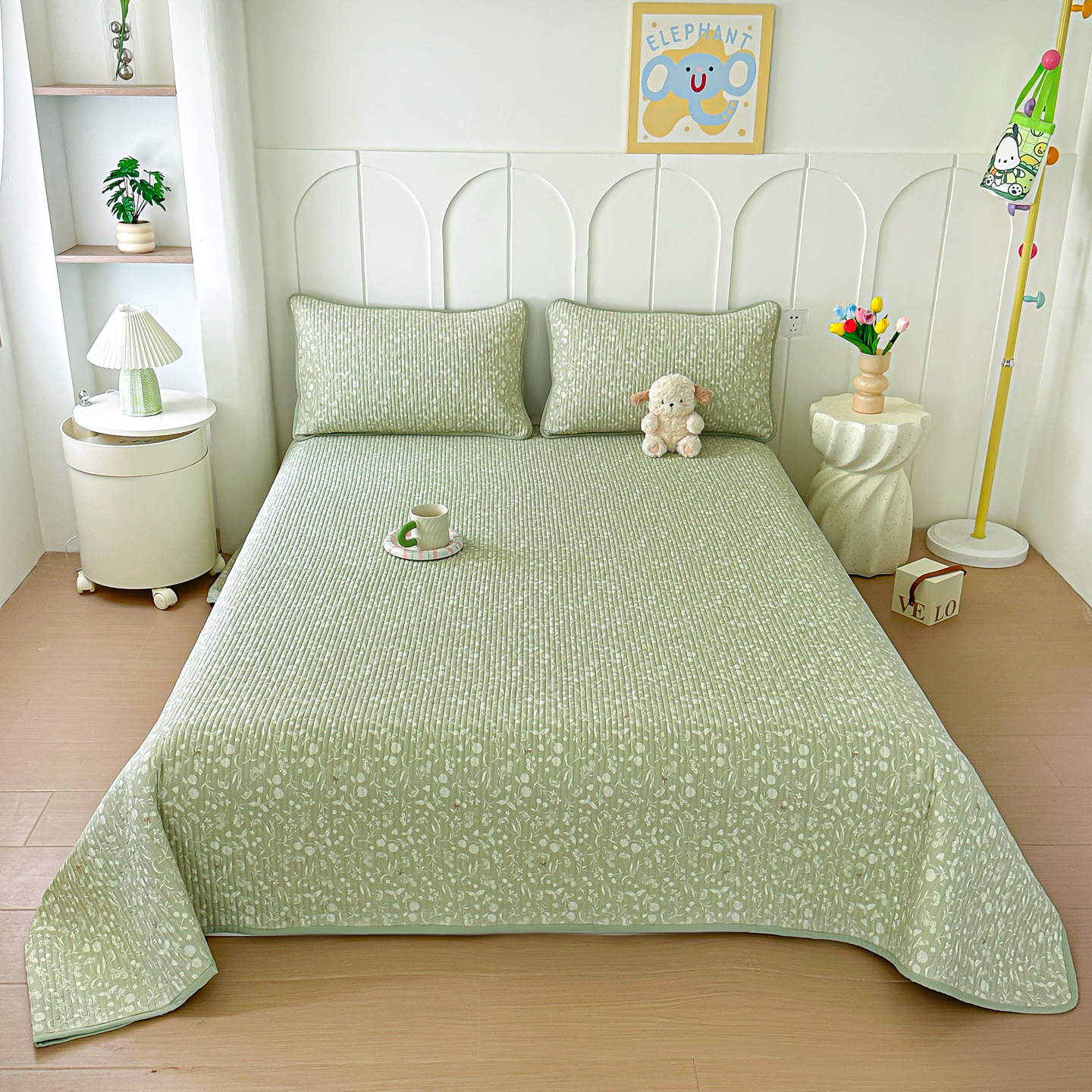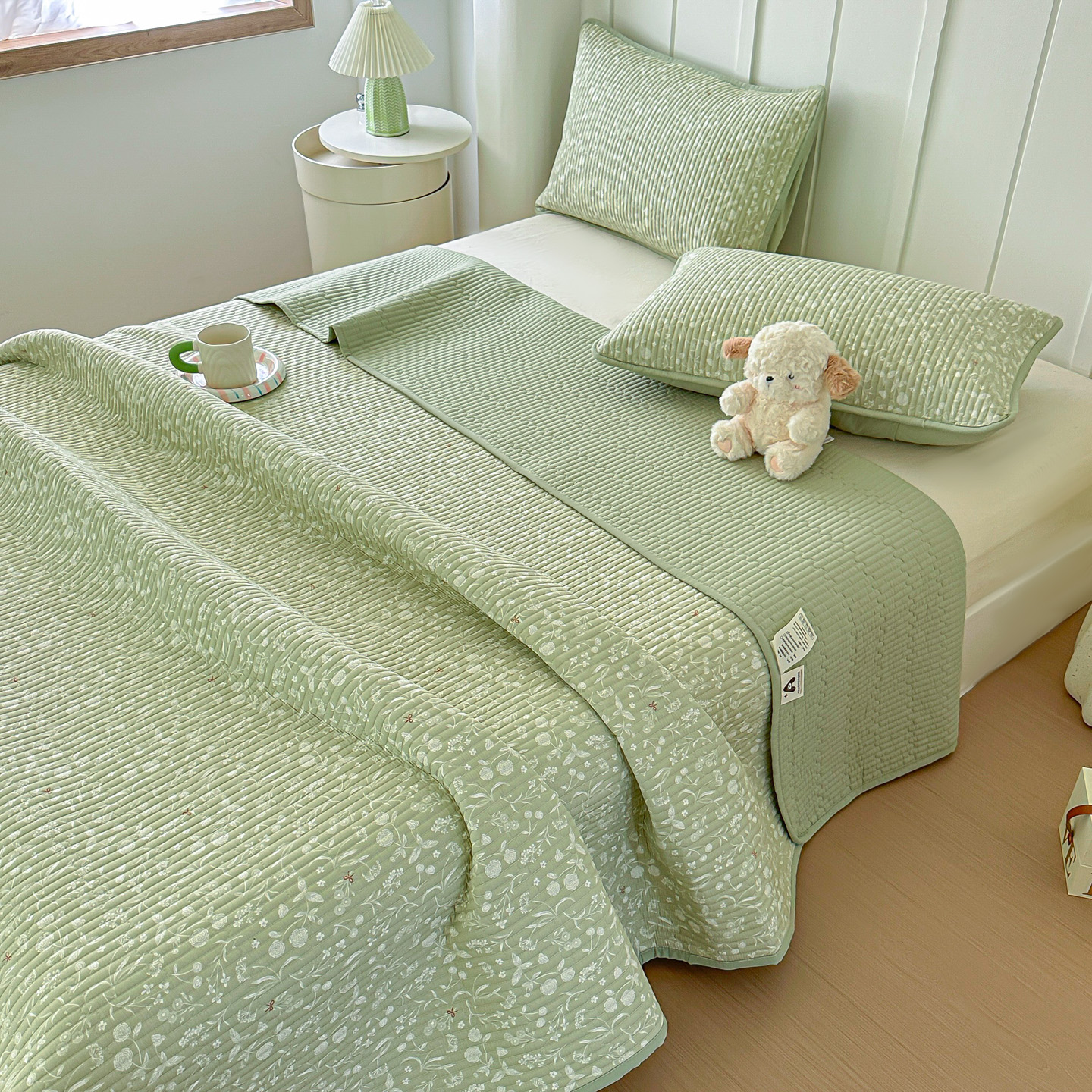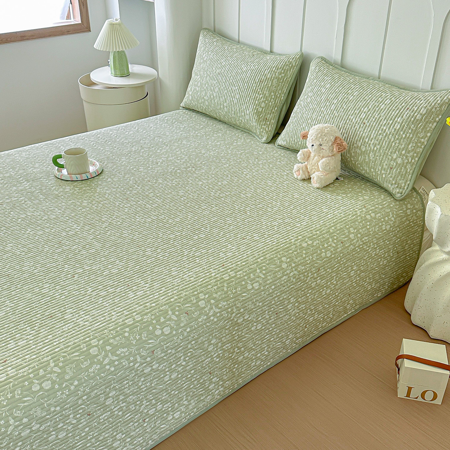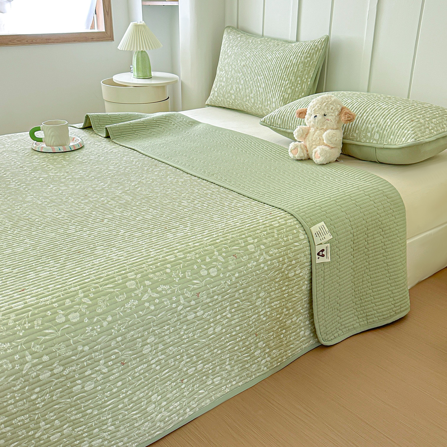 橘夏家纺 2025新款全棉床盖三件套 悠然绿