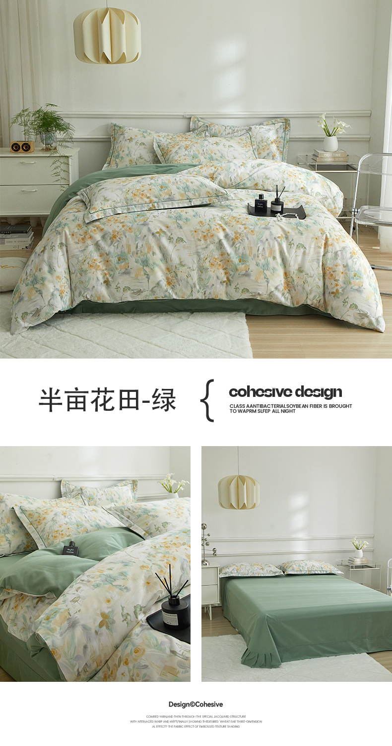 当前位置: 91家纺网 > 商品网购 > 床品套件 > 四件套 > 全棉普通四件套 > 沐白家居 2025新款全棉生态磨毛四件套半亩花田-绿