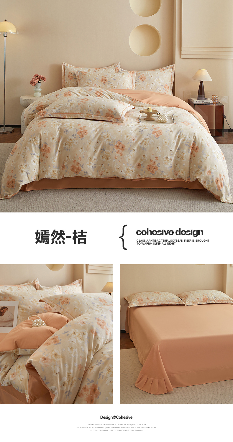 当前位置: 91家纺网 > 商品网购 > 床品套件 > 四件套 > 全棉普通四件套 > 沐白家居 2025新款全棉生态磨毛四件套嫣然-桔