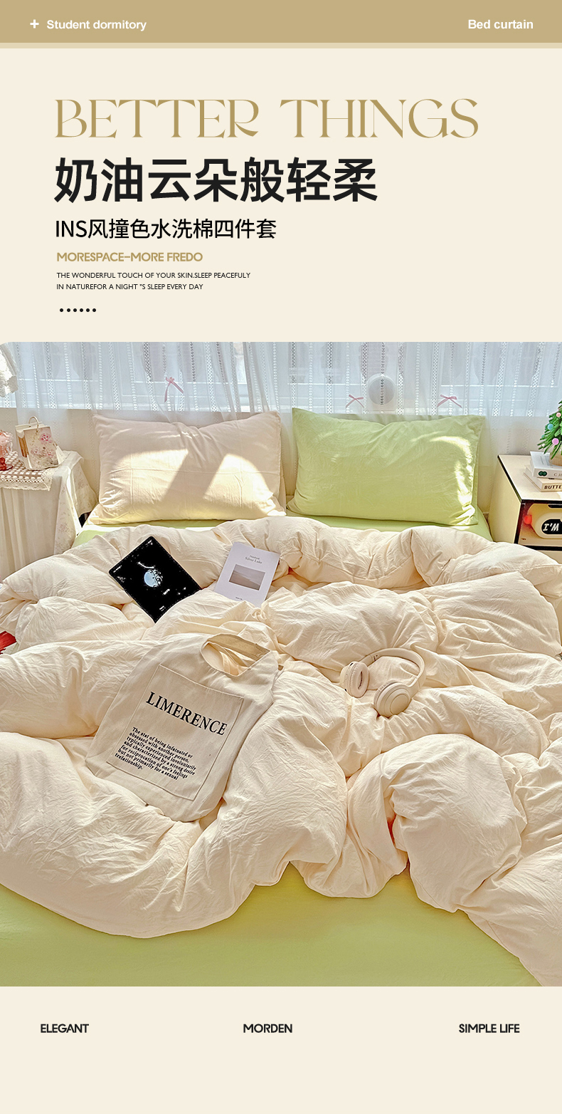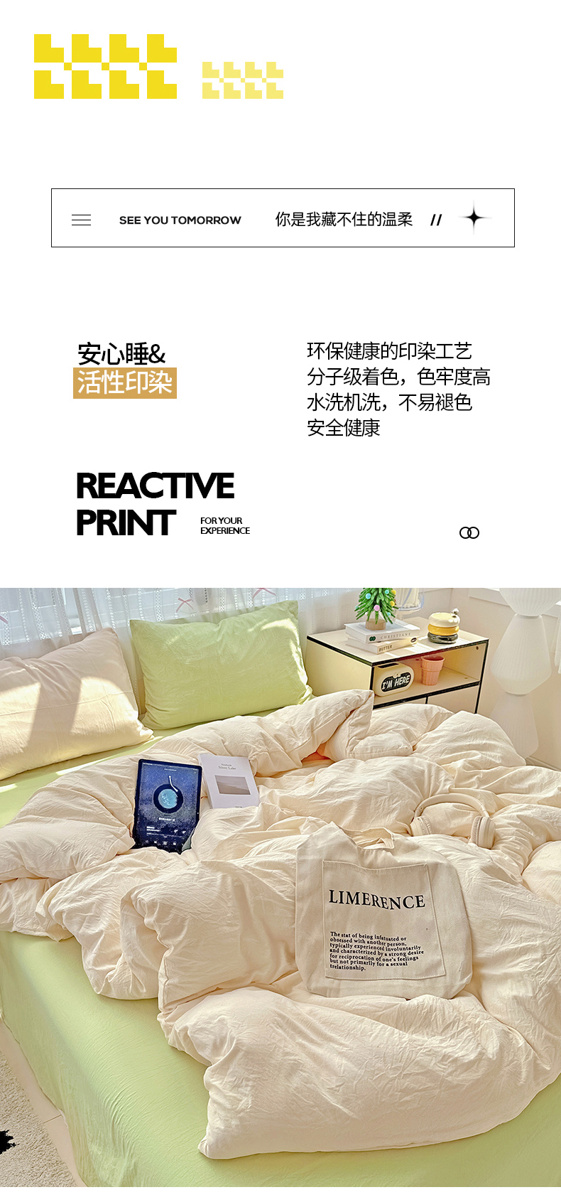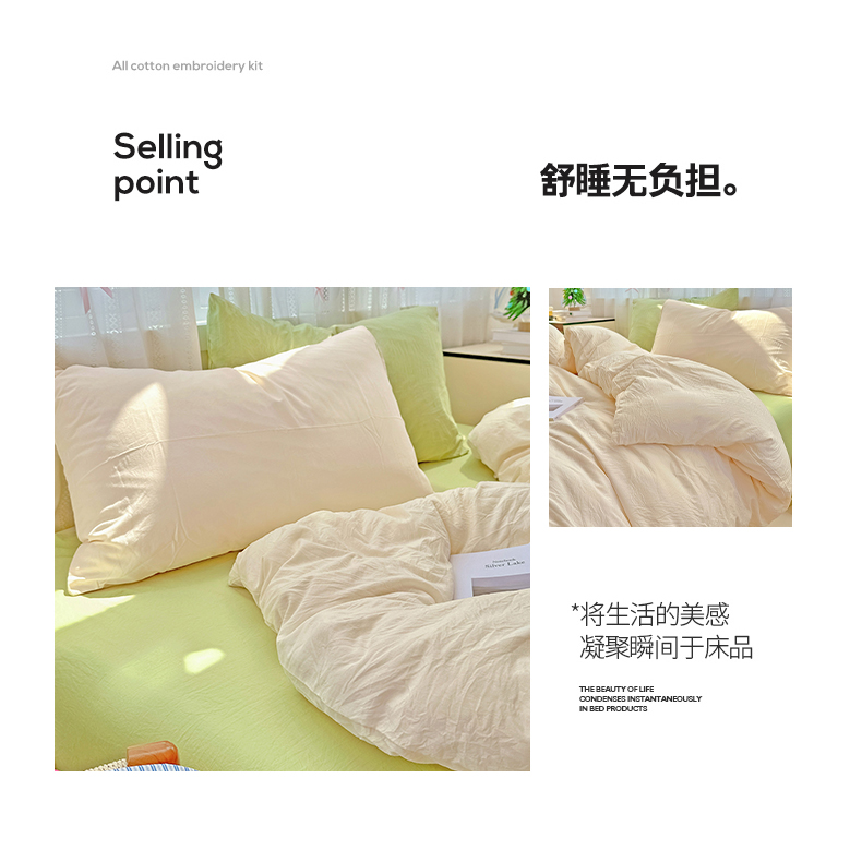 当前位置: 91家纺网 > 商品网购 > 床品套件 > 四件套 > 其它四件套 > 繁花家居 2025新款高克重撞色水洗棉四件套 抹茶可可白