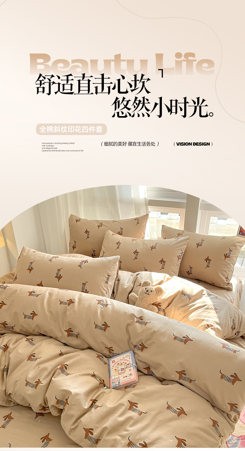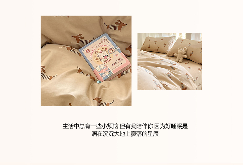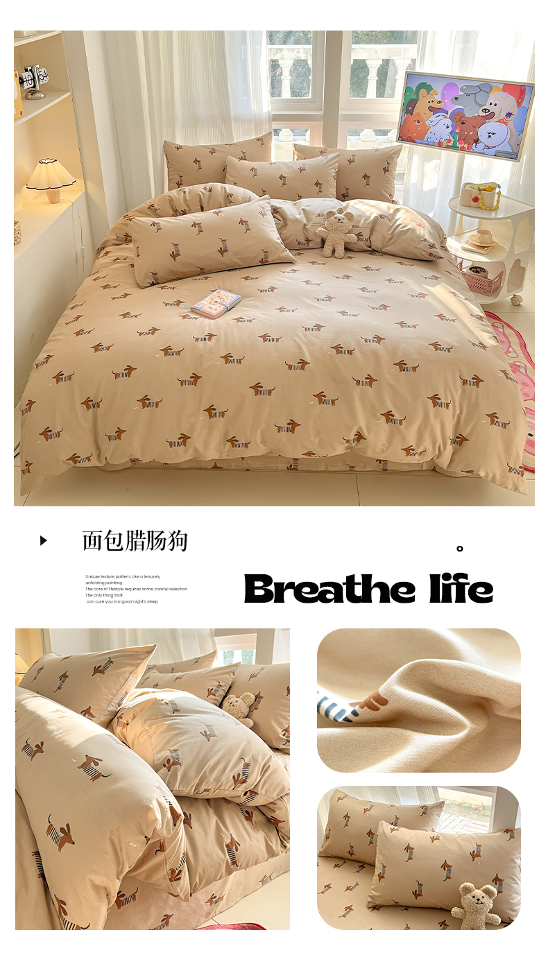 当前位置: 91家纺网 > 商品网购 > 床品套件 > 四件套 > 全棉普通四件套 > 吉象家纺 2025新款亲肤舒适全棉纯棉小清新卡通系列四件套 面包腊肠狗