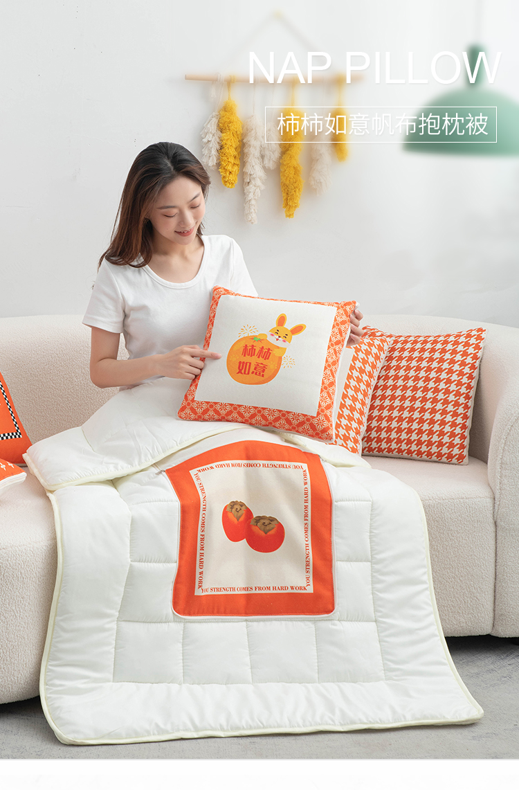 商品名称:新奇异 2025新款柿柿如意棉麻抱枕被 心想事成