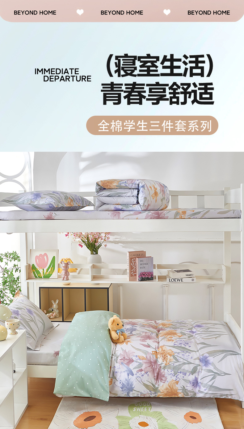 安逸家纺 2024新款全棉学生三件套纯棉学生宿舍三件套 桂馥兰香