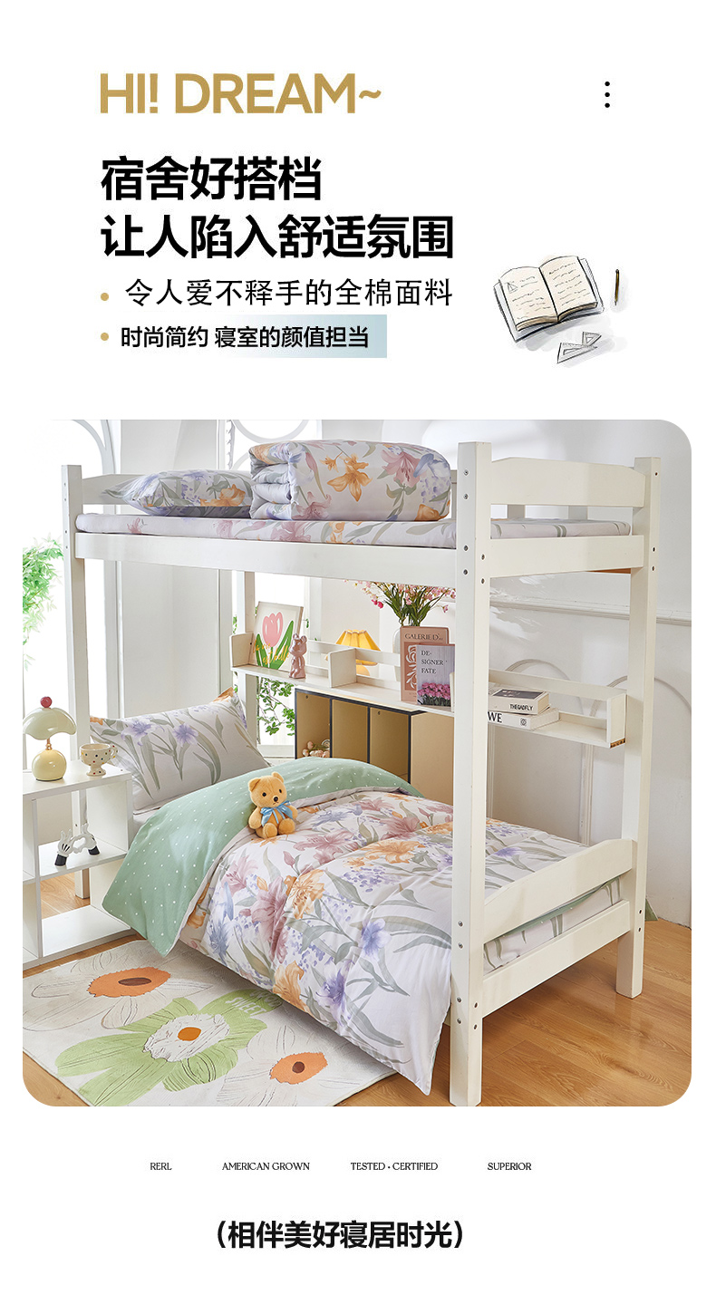 商品名称:安逸家纺 2024新款全棉学生三件套纯棉学生宿舍三件套 桂馥兰香