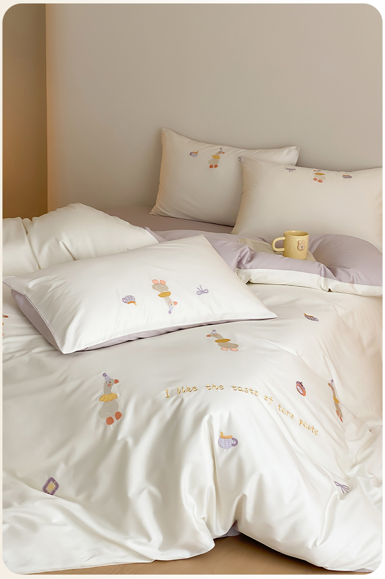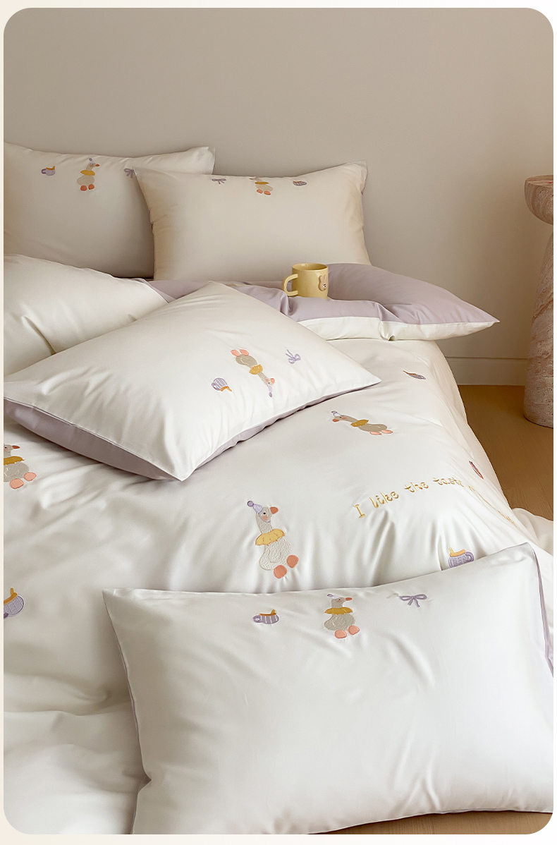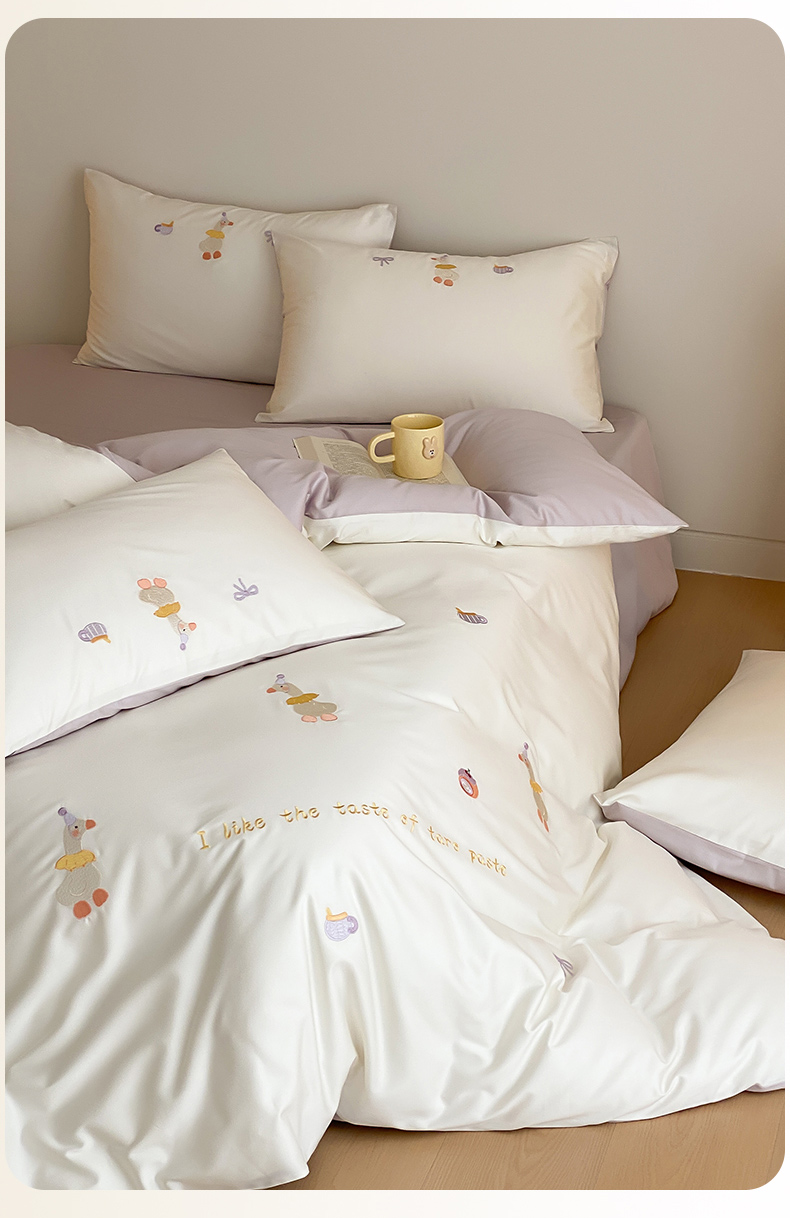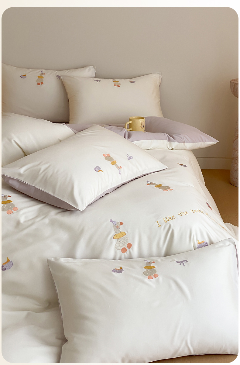 云栖2025全棉刺绣纯色纯棉长绒棉四件套-乐萌系列 喜欢吖