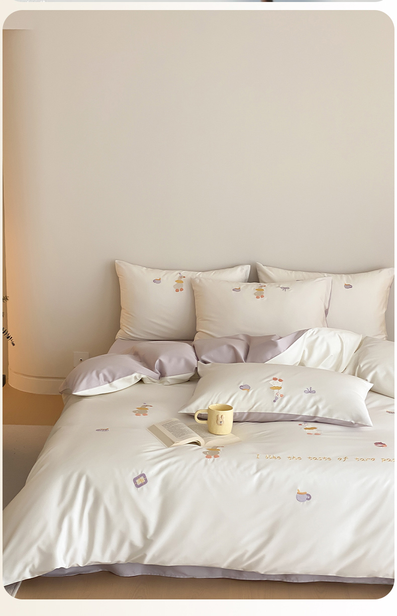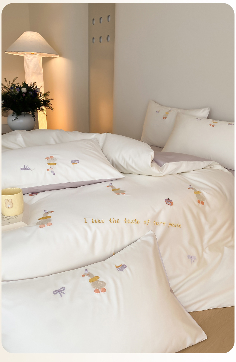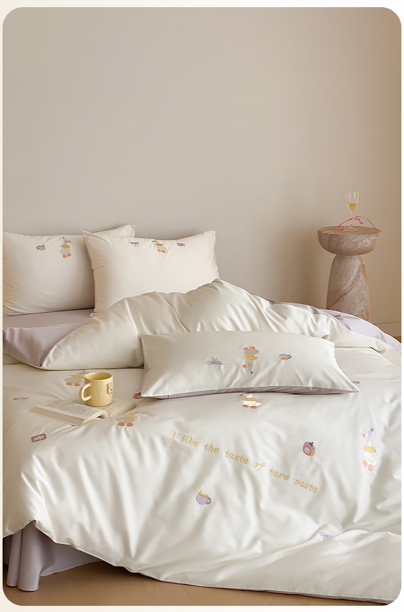 云栖2025全棉刺绣纯色纯棉长绒棉四件套-乐萌系列 喜欢吖