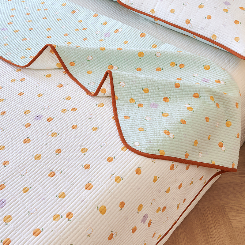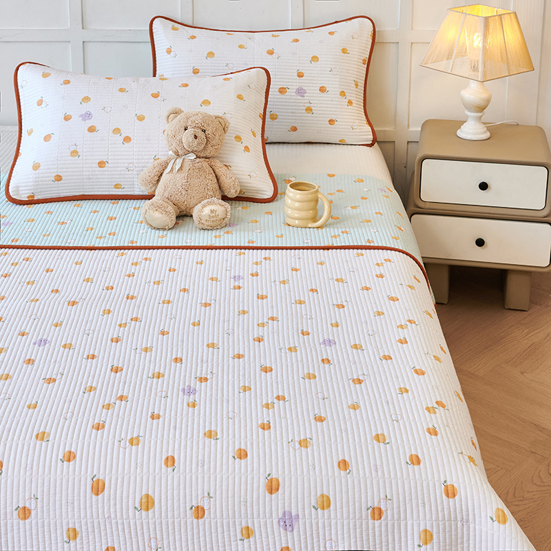 莎果家纺 2025新款12868双面纯棉床盖三件套 小橙子