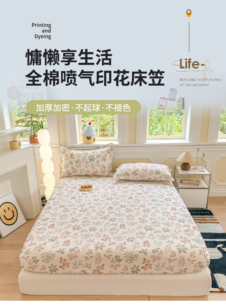 帛织澜家纺 2025新款喷气12868系列纯棉印花单床笠 洛克庄园