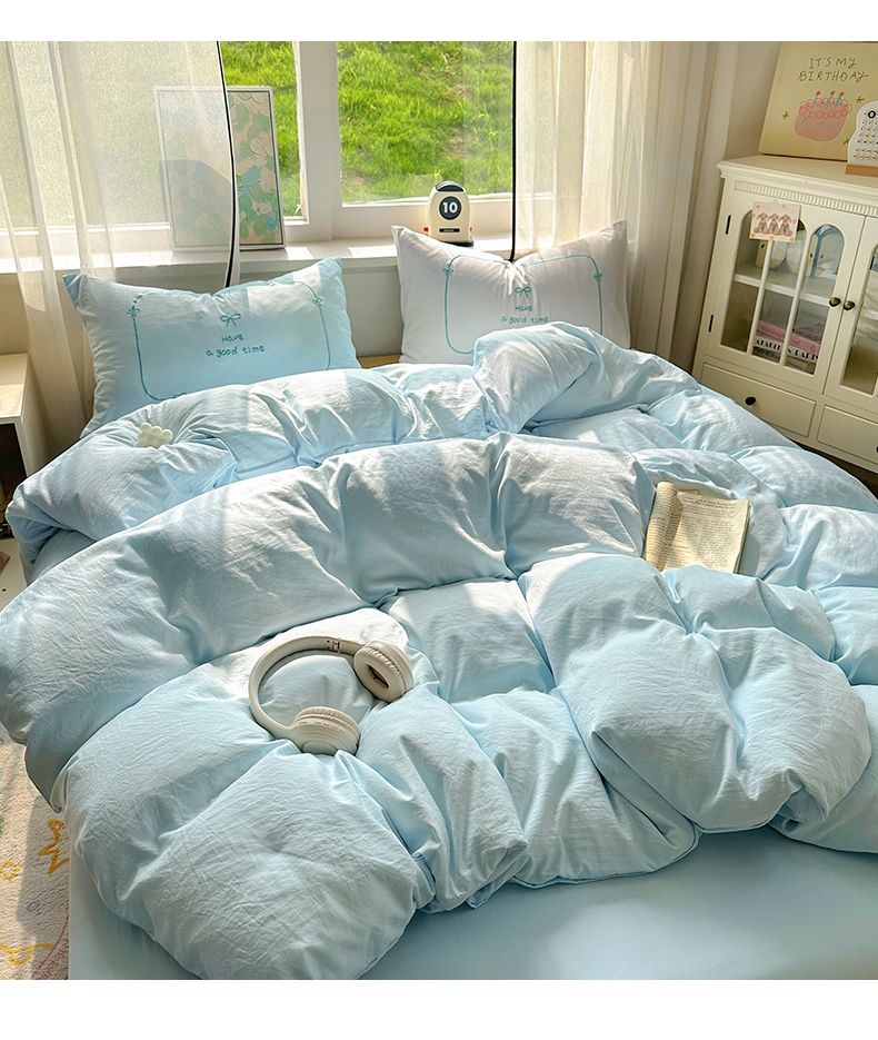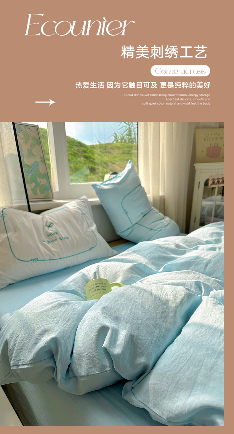 当前位置: 91家纺网 > 商品网购 > 床品套件 > 四件套 > 水洗棉四件套 > 老K (原美阁) 2025年新款水洗棉刺绣四件套学生季单人床宿舍三件套 晚安