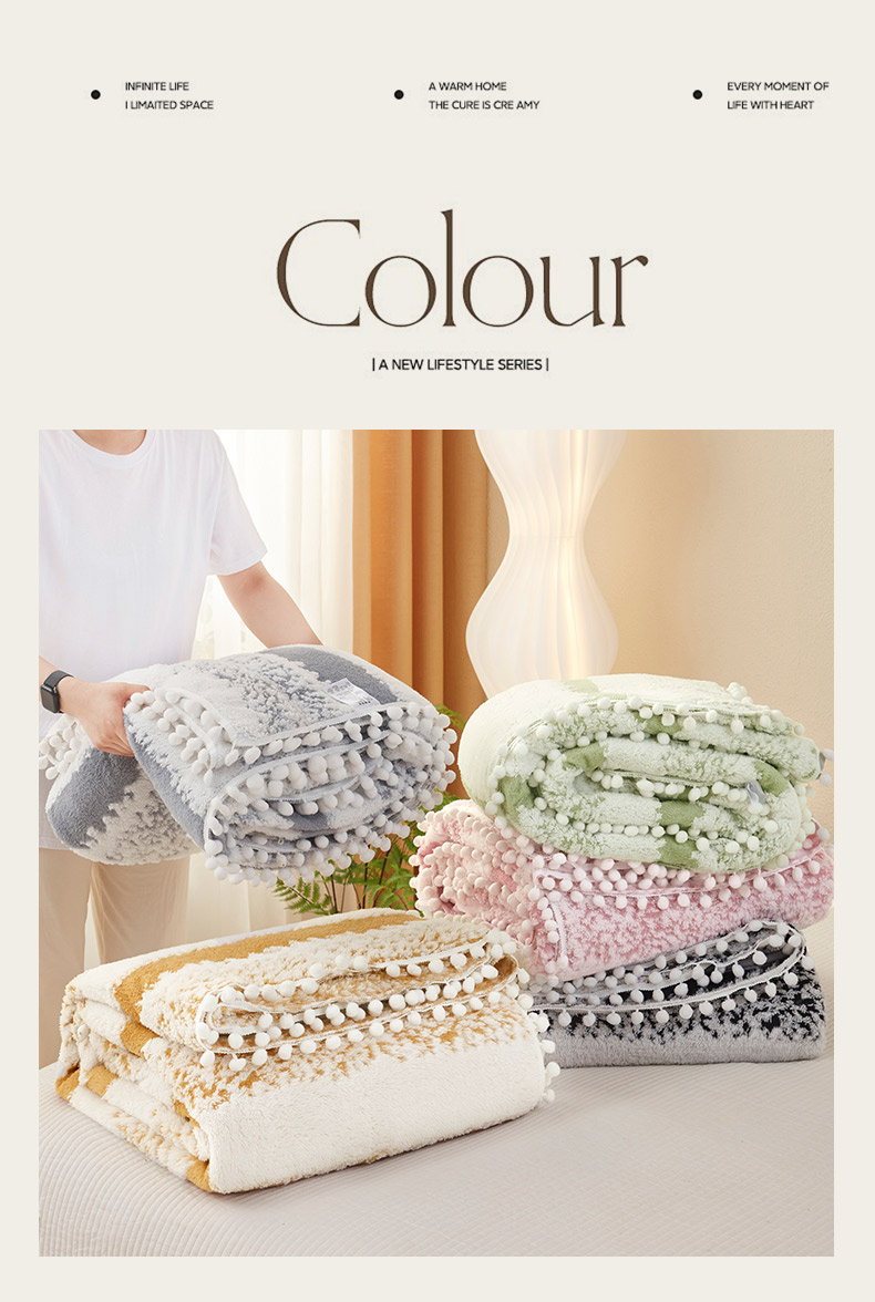 (总)莱家富 2026新款双层加厚阳离子提花毛毯羊羔绒毛毯盖毯办公室午休毯,浔彩-豆沙,浔彩-果绿,浔彩-灰色,浔彩-奶白,浔彩-天蓝,浔彩-驼色