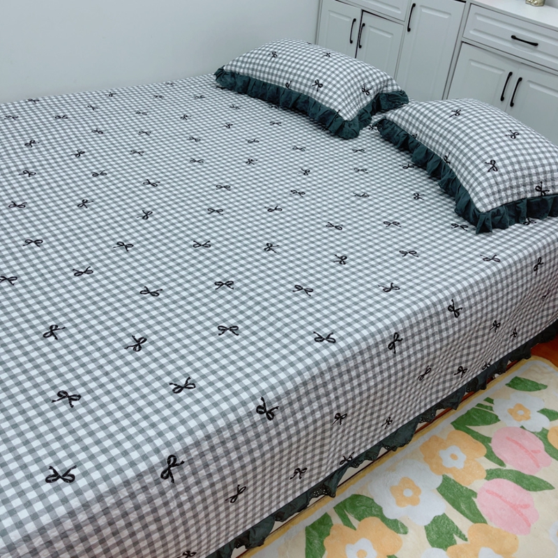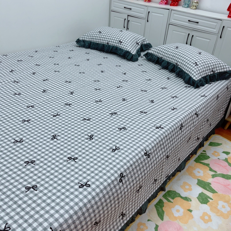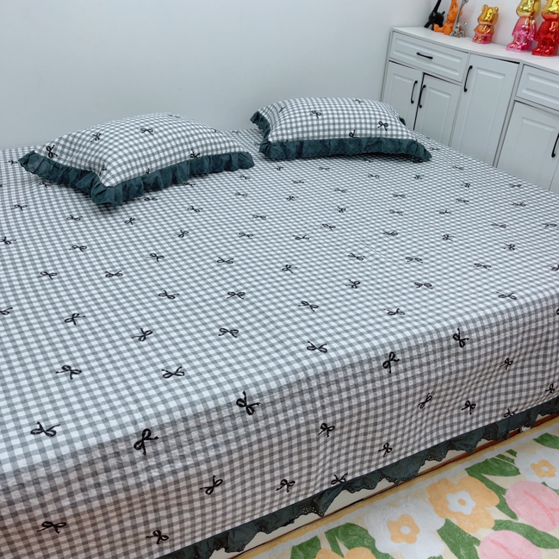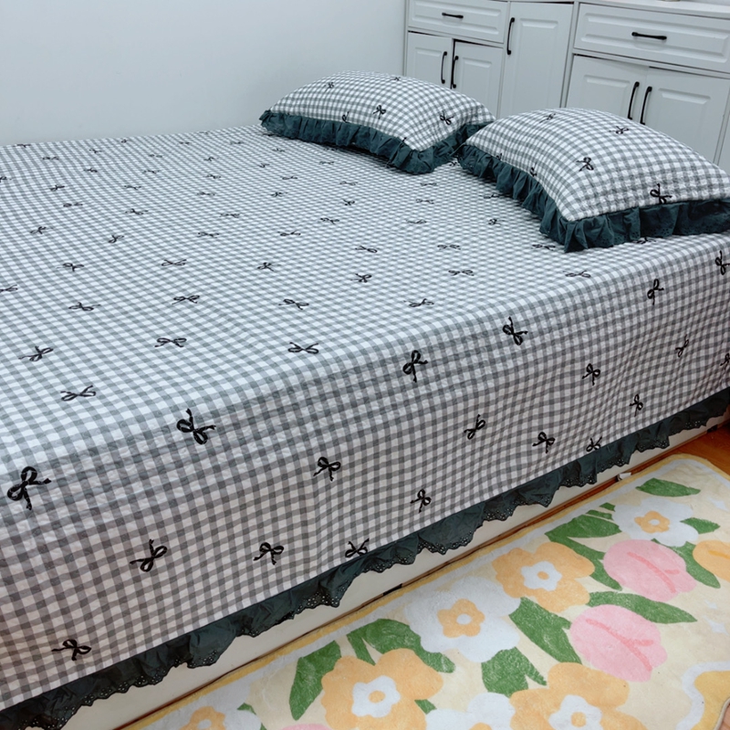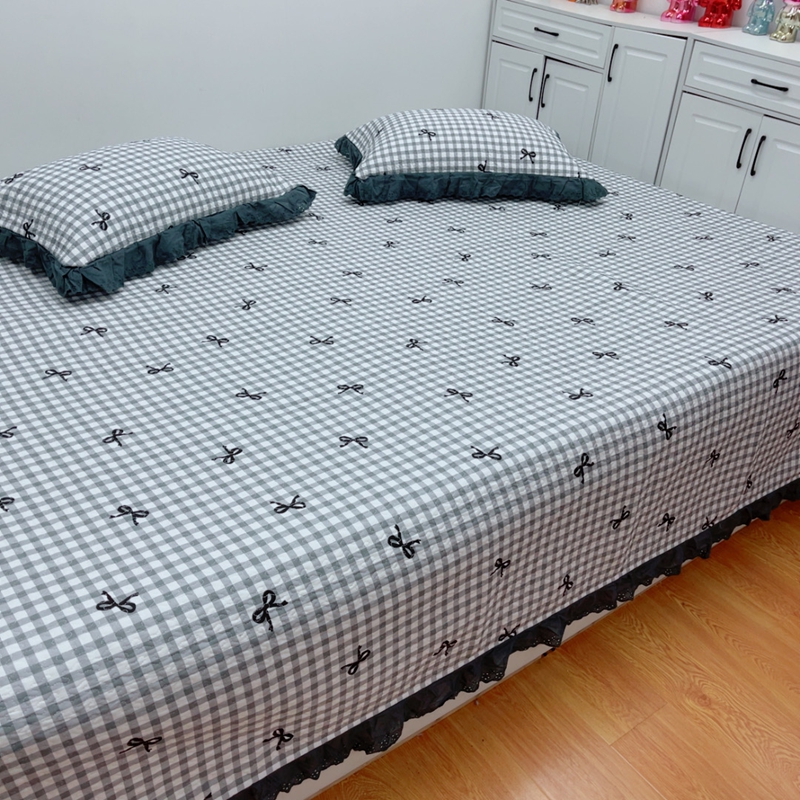 当前位置: 91家纺网 > 商品网购 > 床品套件 > 四件套 > 全棉普通四件套 > 暖居 2025新款纯棉绗缝夹棉榻榻米支持定制防滑全棉印花小碎花农村大炕盖三件套系列 灰格蝴蝶结