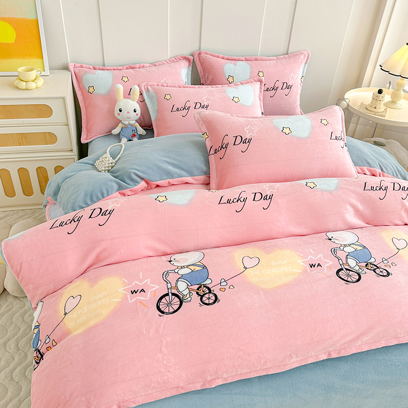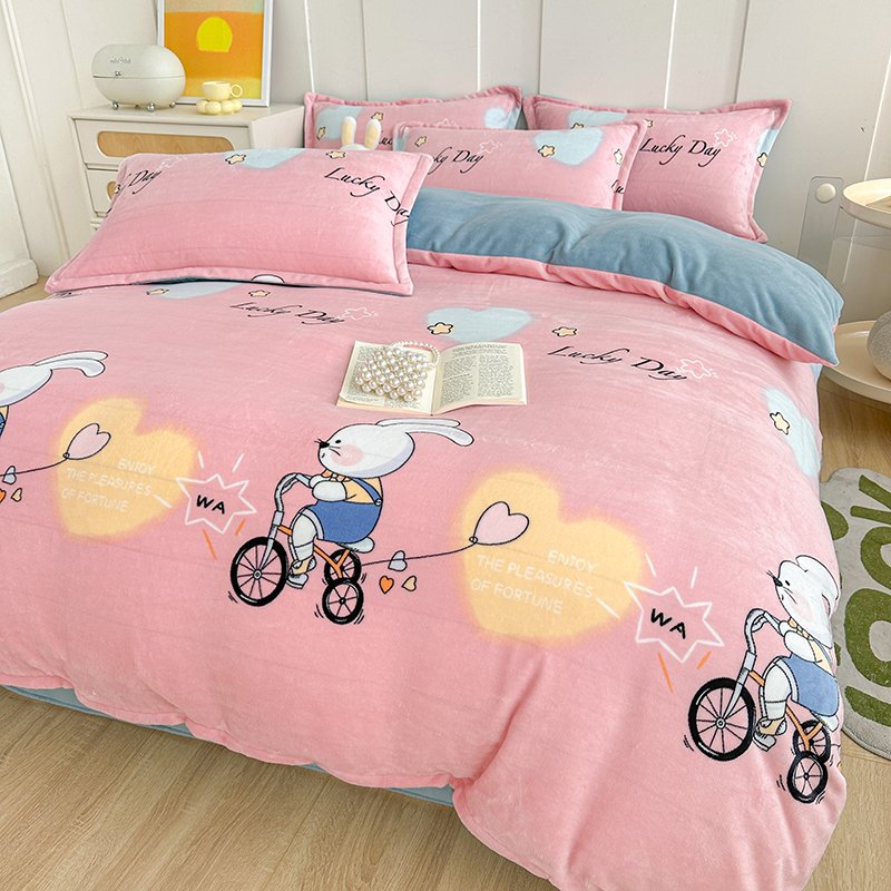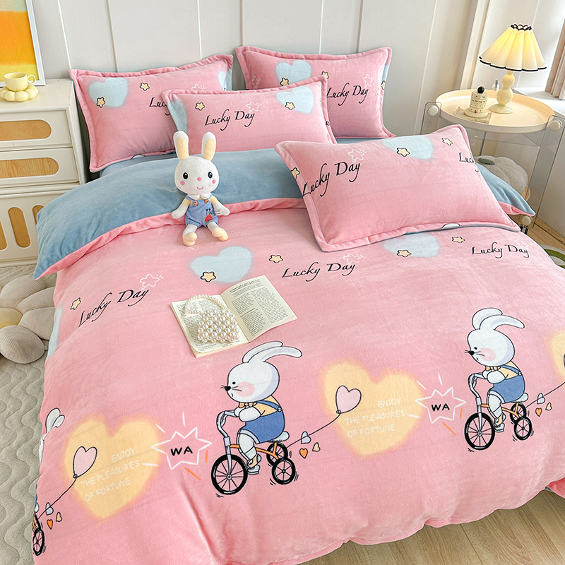 当前位置: 91家纺网 > 商品网购 > 床品套件 > 四件套 > 牛奶绒四件套 > 家贝爱 2025新款A类牛奶绒印花四件套 哈喽小兔-粉