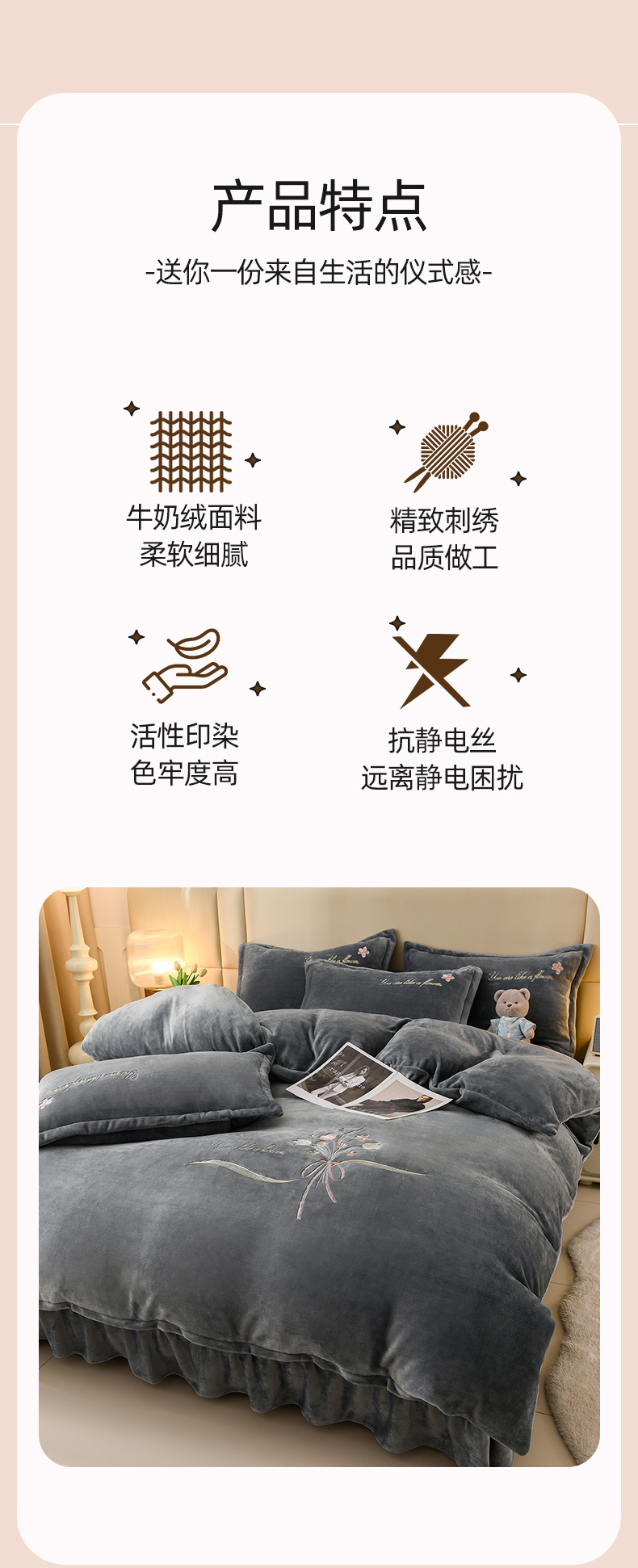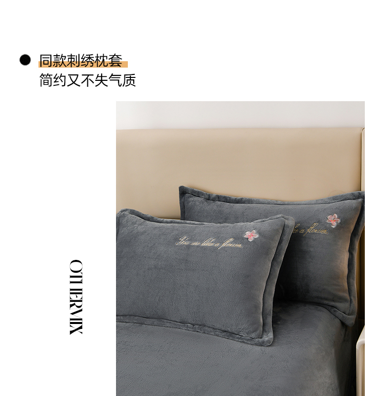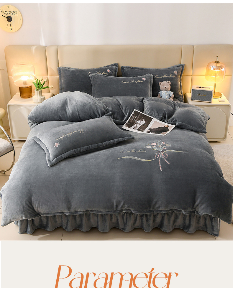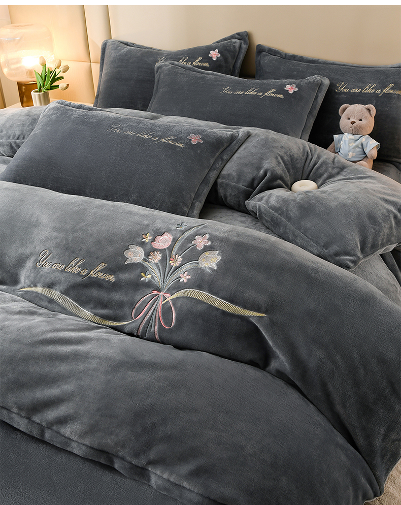 商品名称:绣女坊 2025新款高克重牛奶绒刺绣四件套 郁金香-灰