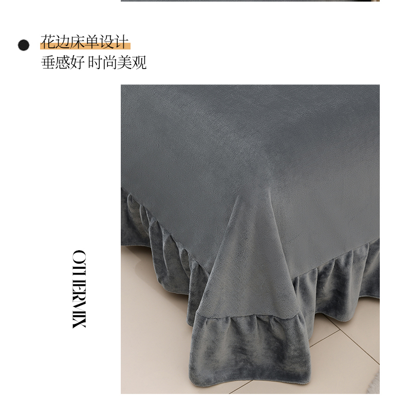 2023牛奶绒保暖四件套韩版蕾丝花边,紫色,松花绿,灰色,豆沙,宾利蓝