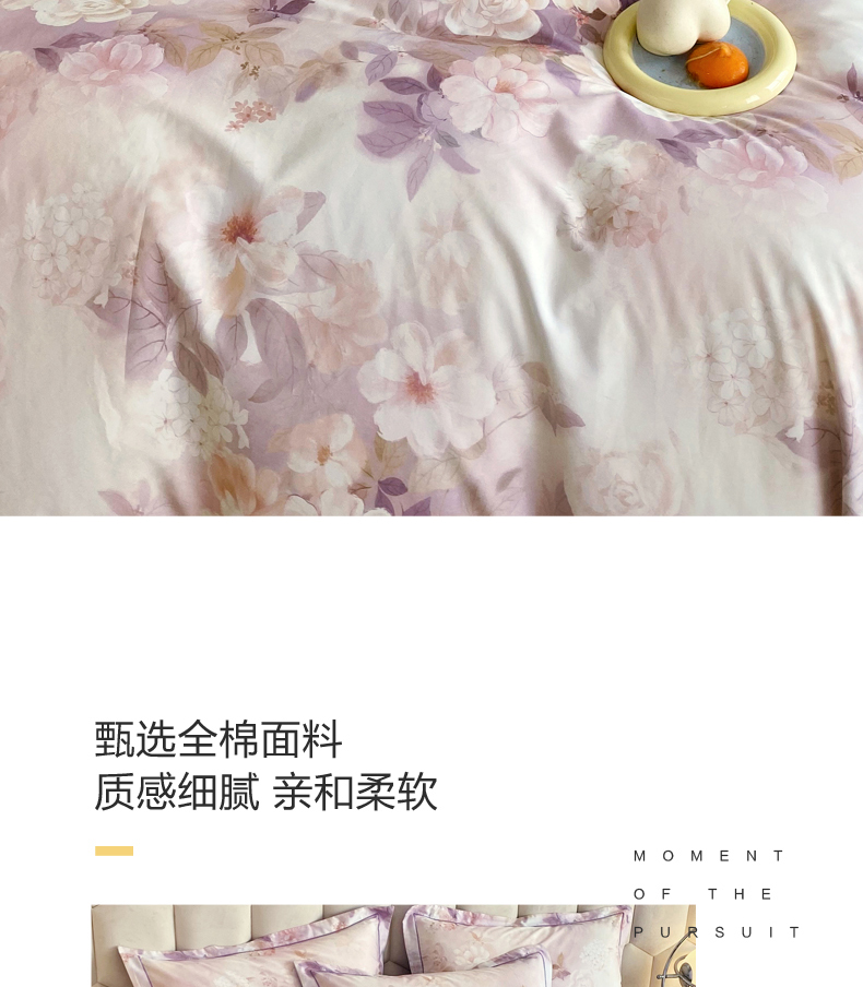 当前位置: 91家纺网 > 商品网购 > 床品套件 > 四件套 > 全棉普通四件套 > 星期三家纺 2025年8月新款铂金全棉纯棉13372四件套 桃之夭夭