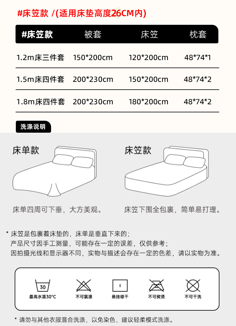 1.2m床笠三件套被套150*200 | ¥106.00 |