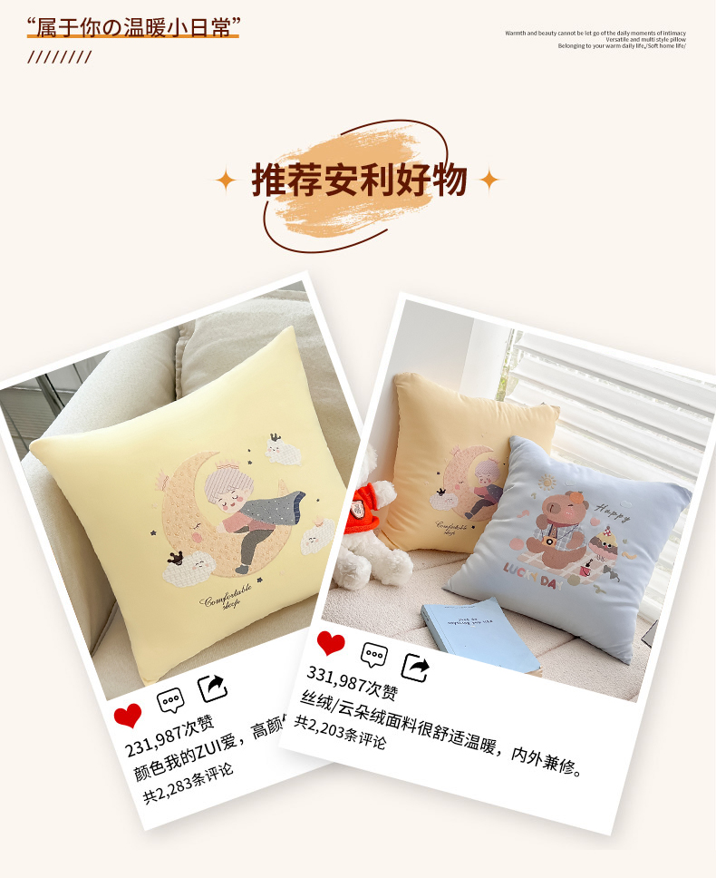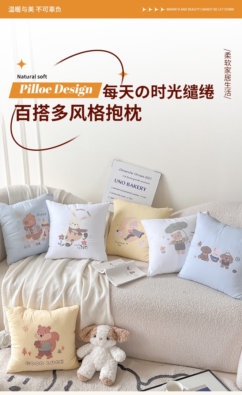 商品名称:(总)2025新款高科技植绒发泡烫绣卡通抱枕多巴胺可爱烫绣卧室靠枕抱枕含芯