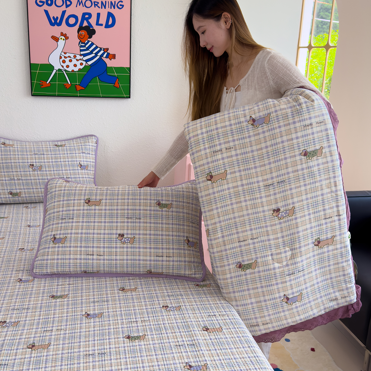 赫梵茜 2025新款高温砂洗全棉床盖单品床盖床盖单件床盖三件套【可搭配同款春秋被】 腊肠伙伴